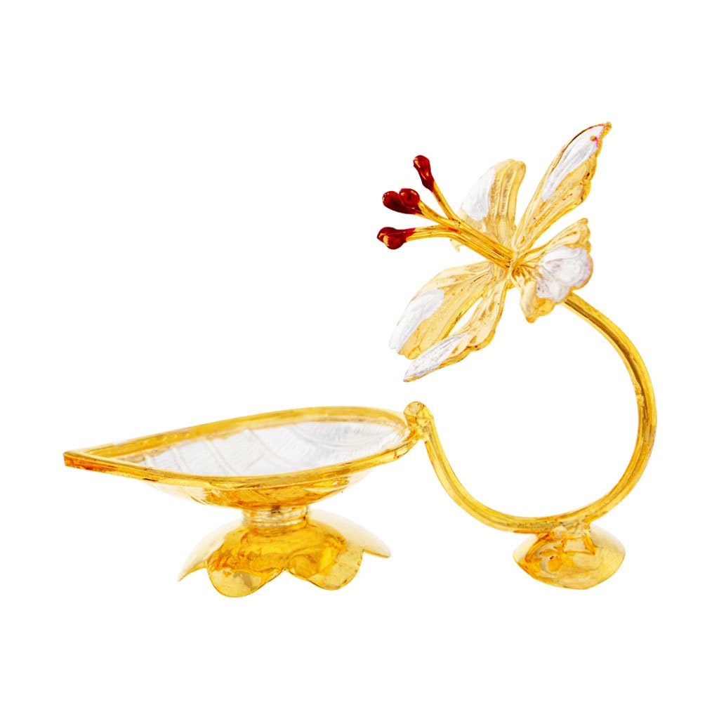 Sri Jagdamba Pearls Flower Shape Golden Silver Diya: This Stylish Silver Diya Will Be An Ideal Way To Gift Your Love Once On This Special Occasion. Product Features: Silver Weight : 13 Grams Silver Pu ...