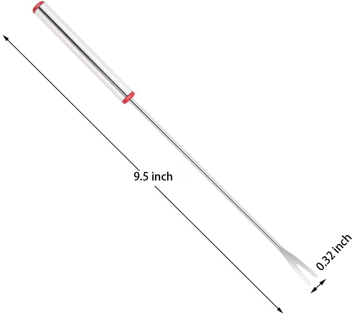 - Q: How long are the fondue forks? A: Each fork measures 9.5 inches in length, providing a comfortable reach for dipping.