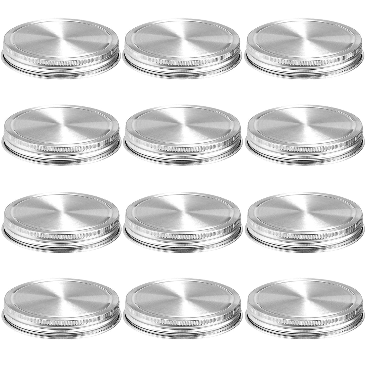 Stainless Steel Mason Jar Lids,12 Pack Polished Surface,Reusable And Leak Proof,Storage Caps With Silicone Seals For Wide Mouth