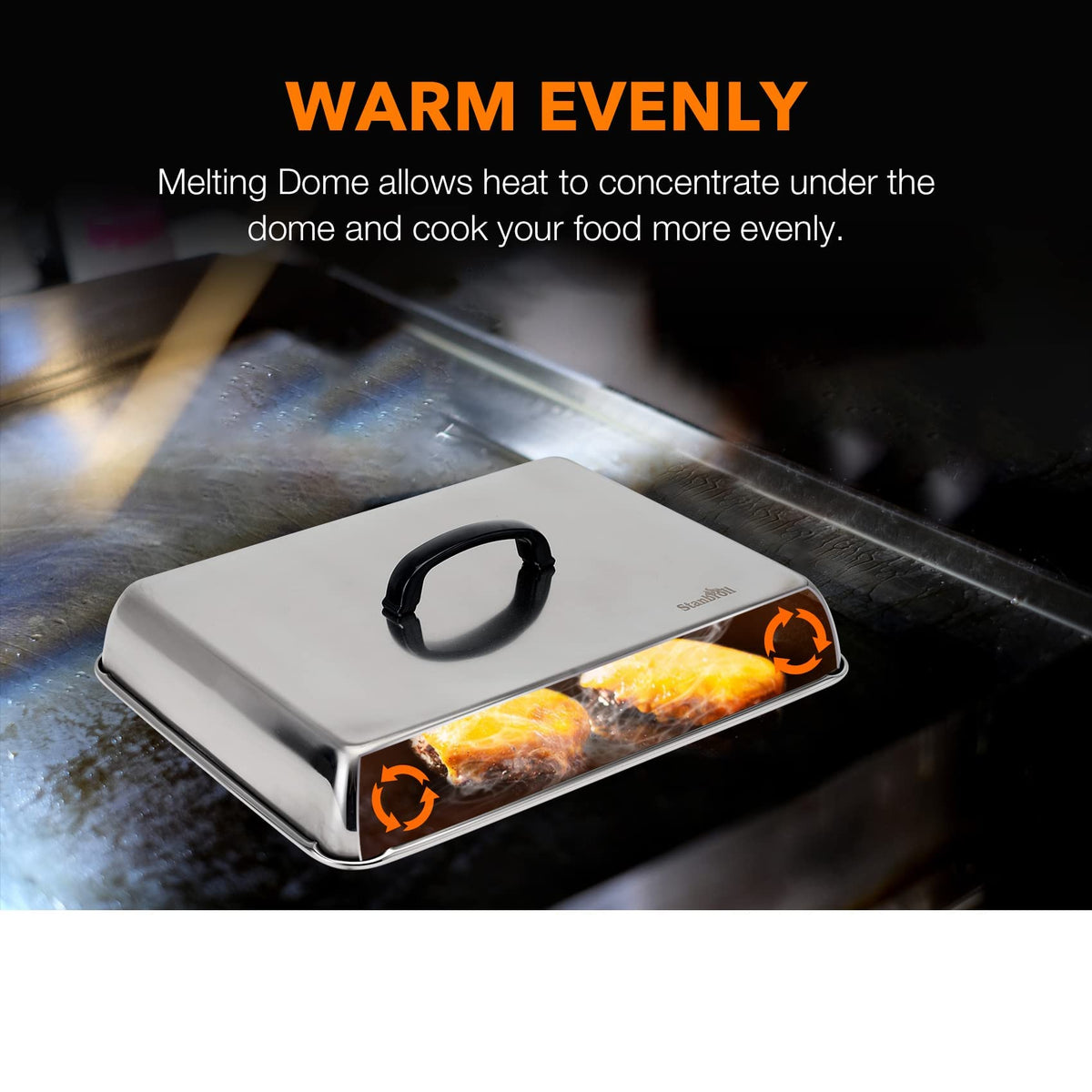 • Q: Is the basting cover effective for cooking? A: Yes, the basting cover is designed to concentrate heat, making it effective for melting cheese, steaming vegetables, and roasting.