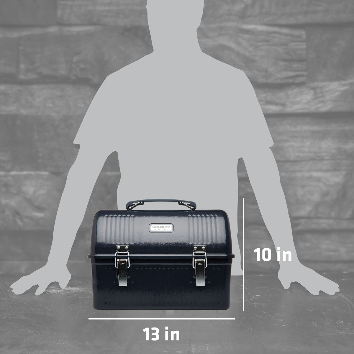 - Q: What are the dimensions of the Stanley Classic Lunch Box? A: The lunch box measures 10 inches in height, 13 inches in width, and 6.5 inches in depth.