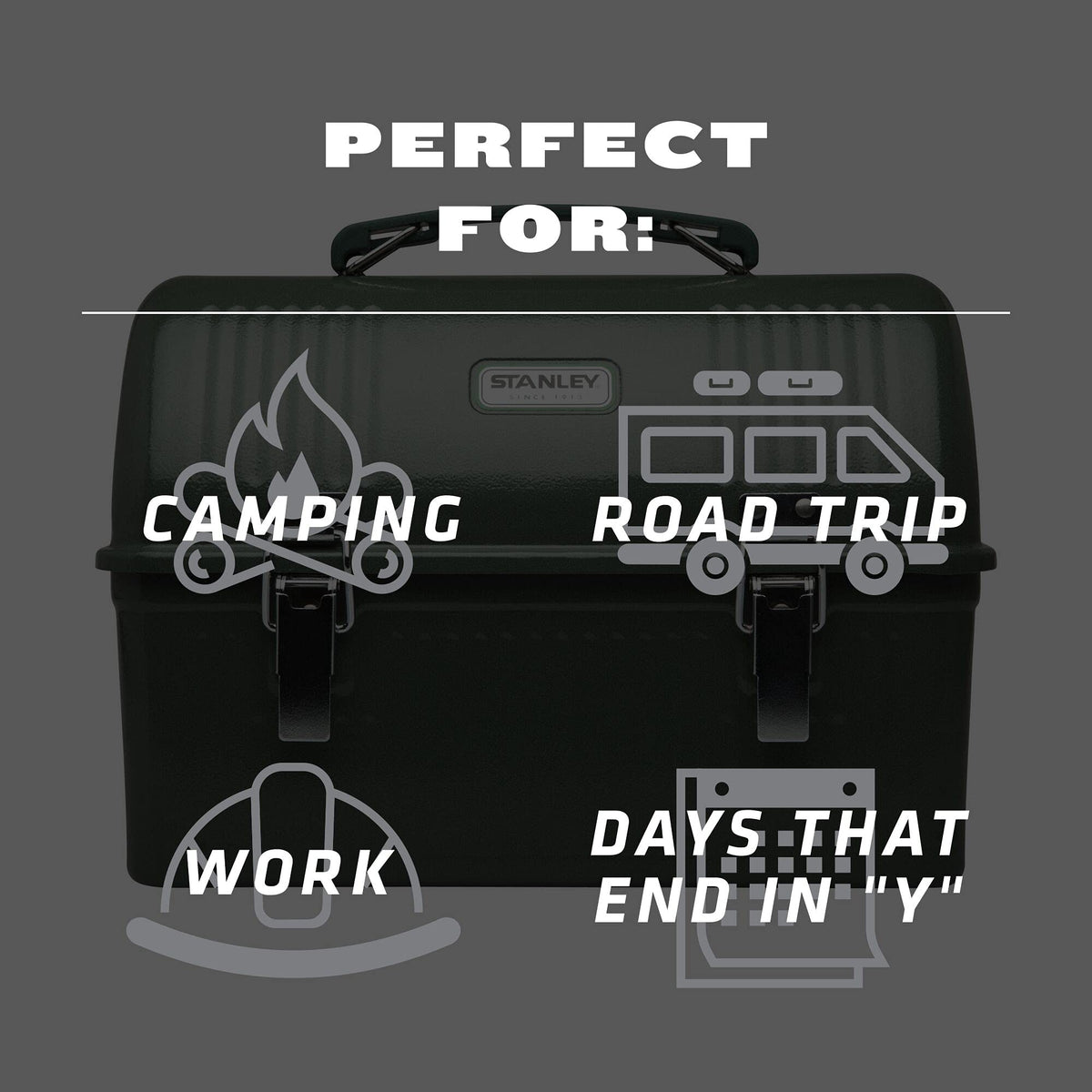 Stanley Classic 10Qt Lunch Box - Large Lunchbox - Fits Meals, Containers, Thermos - Easy To Carry, Built To Last - Matte Black