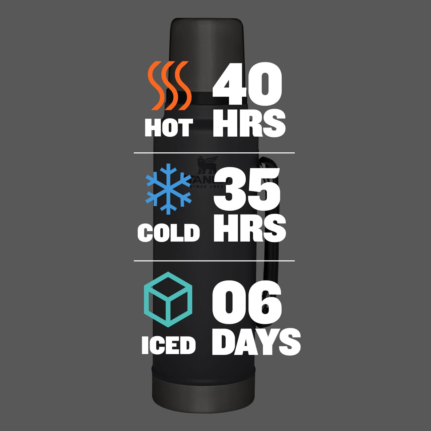 - Q: How long can the Stanley Classic Vacuum Insulated Bottle keep drinks hot or cold? A: The Stanley Classic Vacuum Insulated Bottle can keep drinks hot or cold for up to 24 hours.