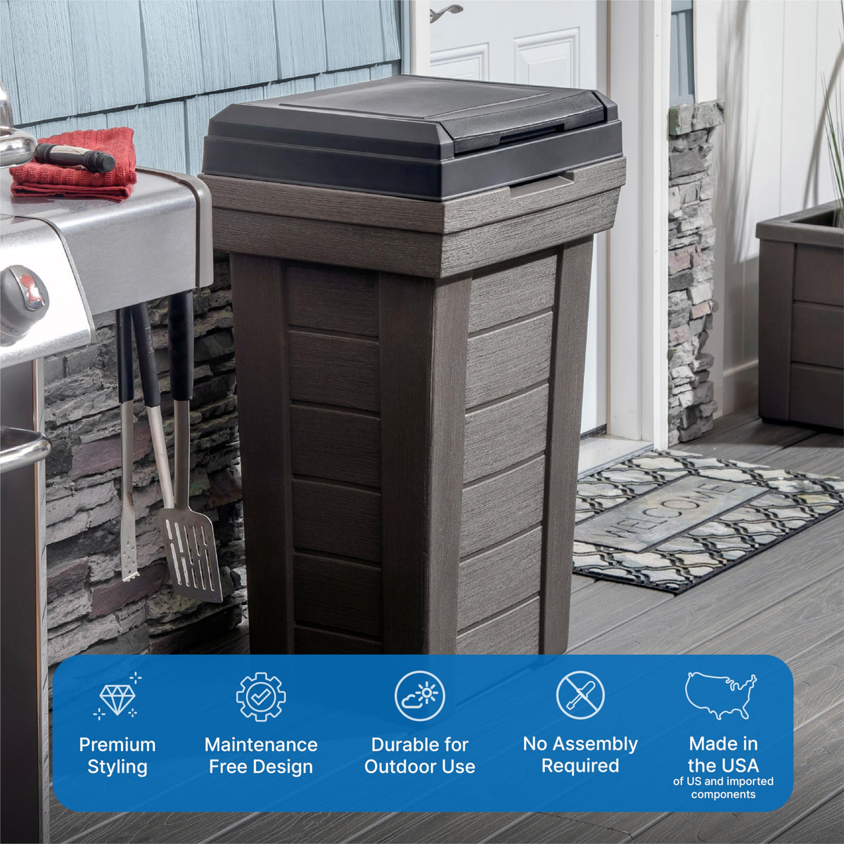 Step2 Lakewood Garbage Container - Dark Cedar - Indoor/Outdoor Refuse Container - Large Capacity Garbage Receptacle - Decorative