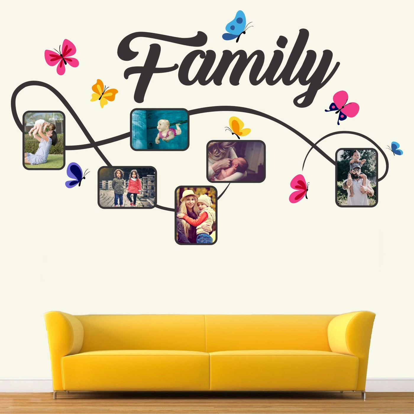 Stickme 'Family - Photo - Frames - Butterfly - Creative - Colorful - Wall Sticker' -Sm696 (Pvc Vinyl - 120Cm X 70 Cm)
