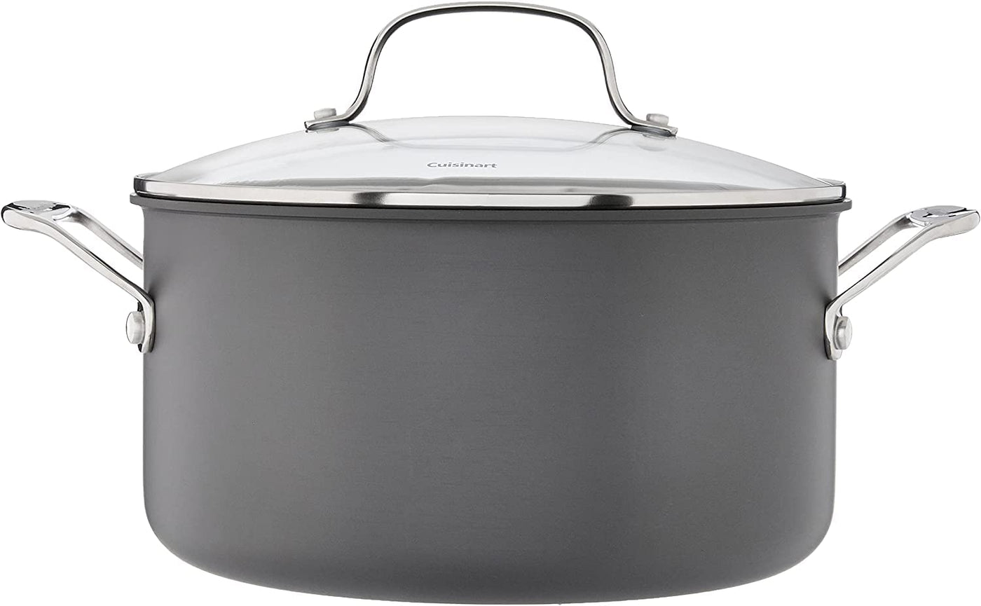 • Q: What materials are used in the construction of this stockpot? A: This stockpot is constructed from durable hard-anodized aluminum, which ensures even heat distribution and efficient cooking.