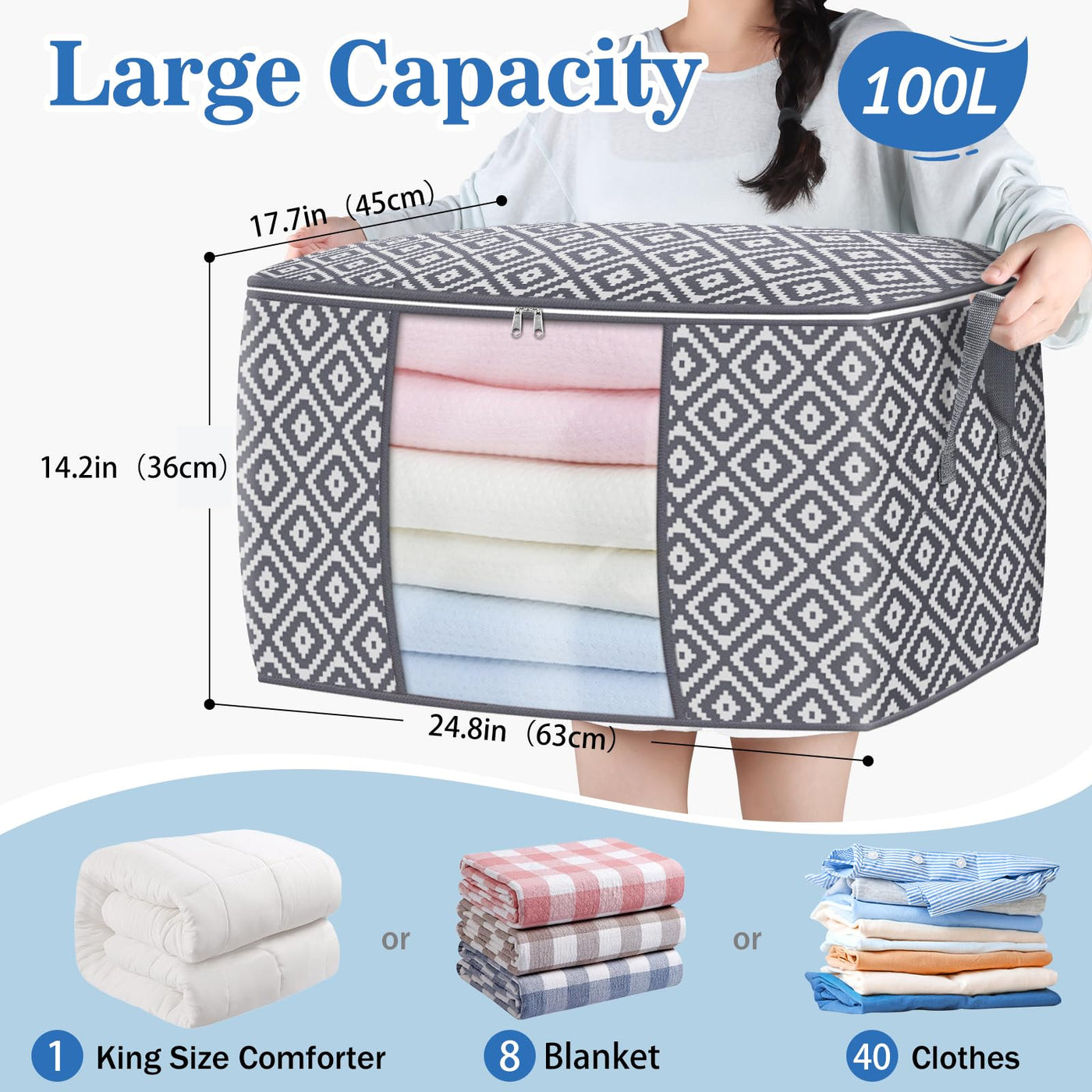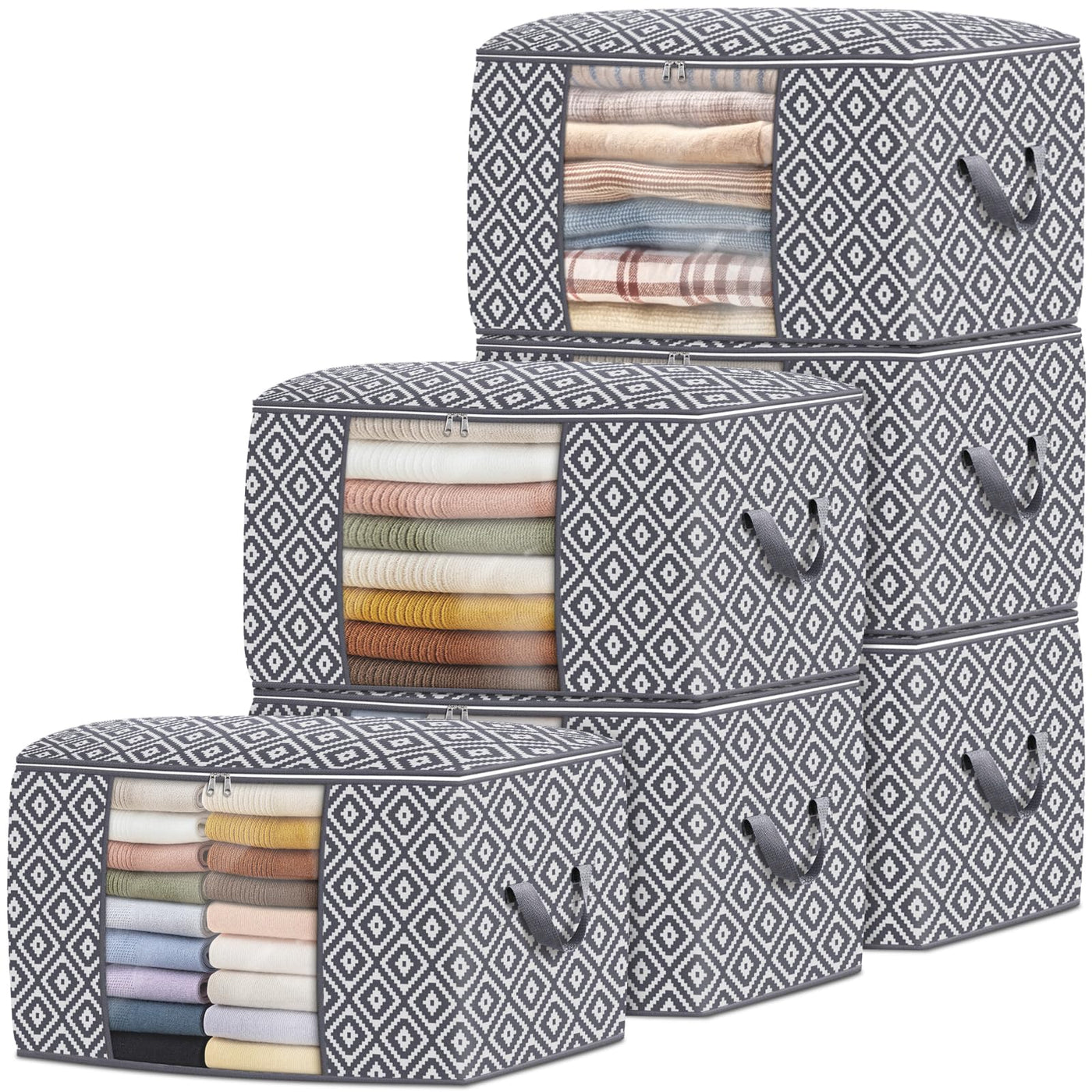 StorageTastic Direct 100L, 6 Pack, Storage Containers, Large Clothes Storage Bins Foldable Organization and Storage Bags with Re