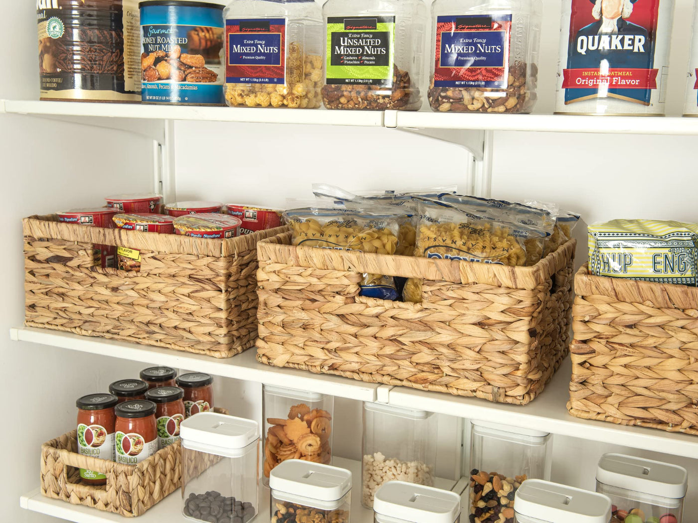 Storageworks Large Rectangular Wicker Basket, Water Hyacinth Storage Basket With Built-In Handles, 1 Pack