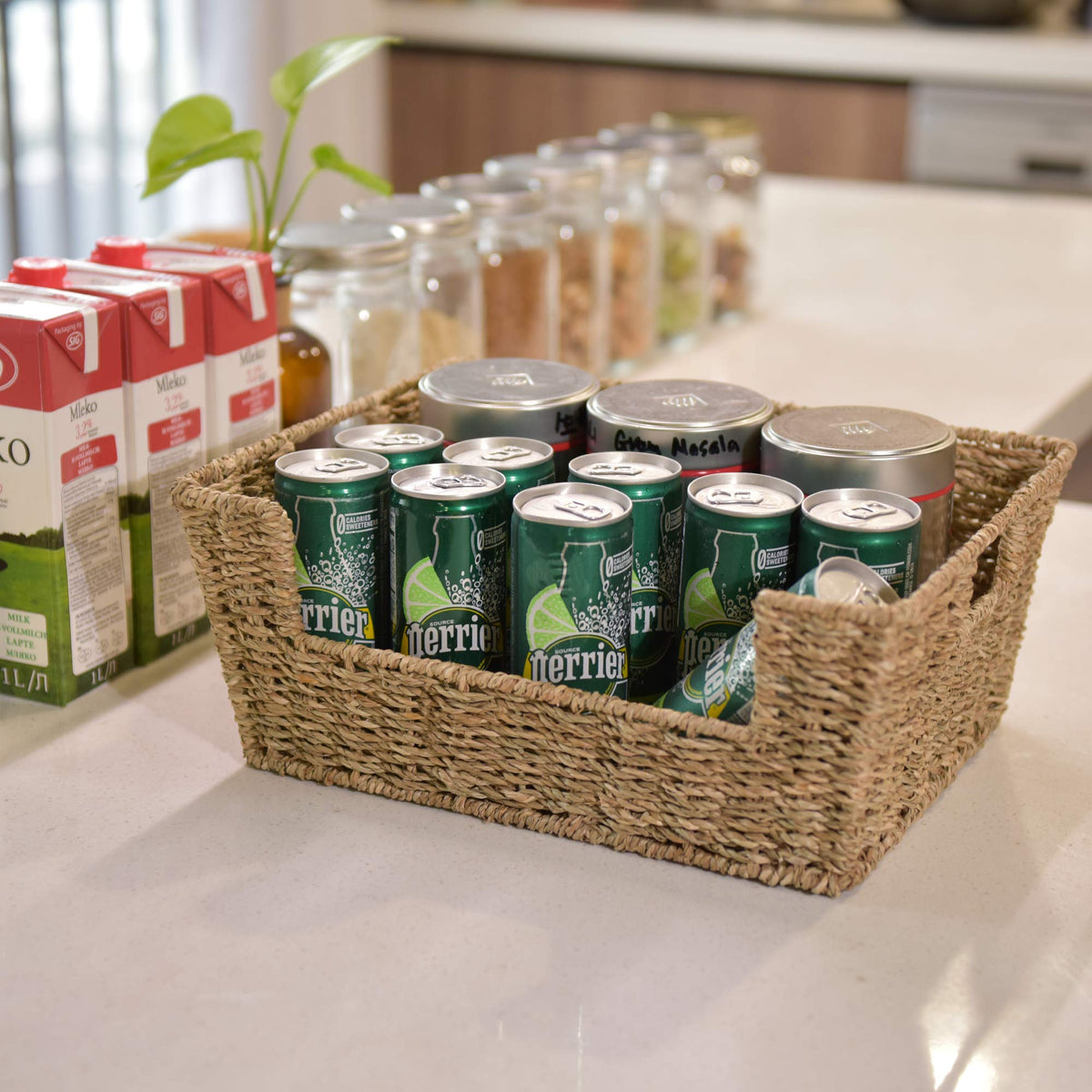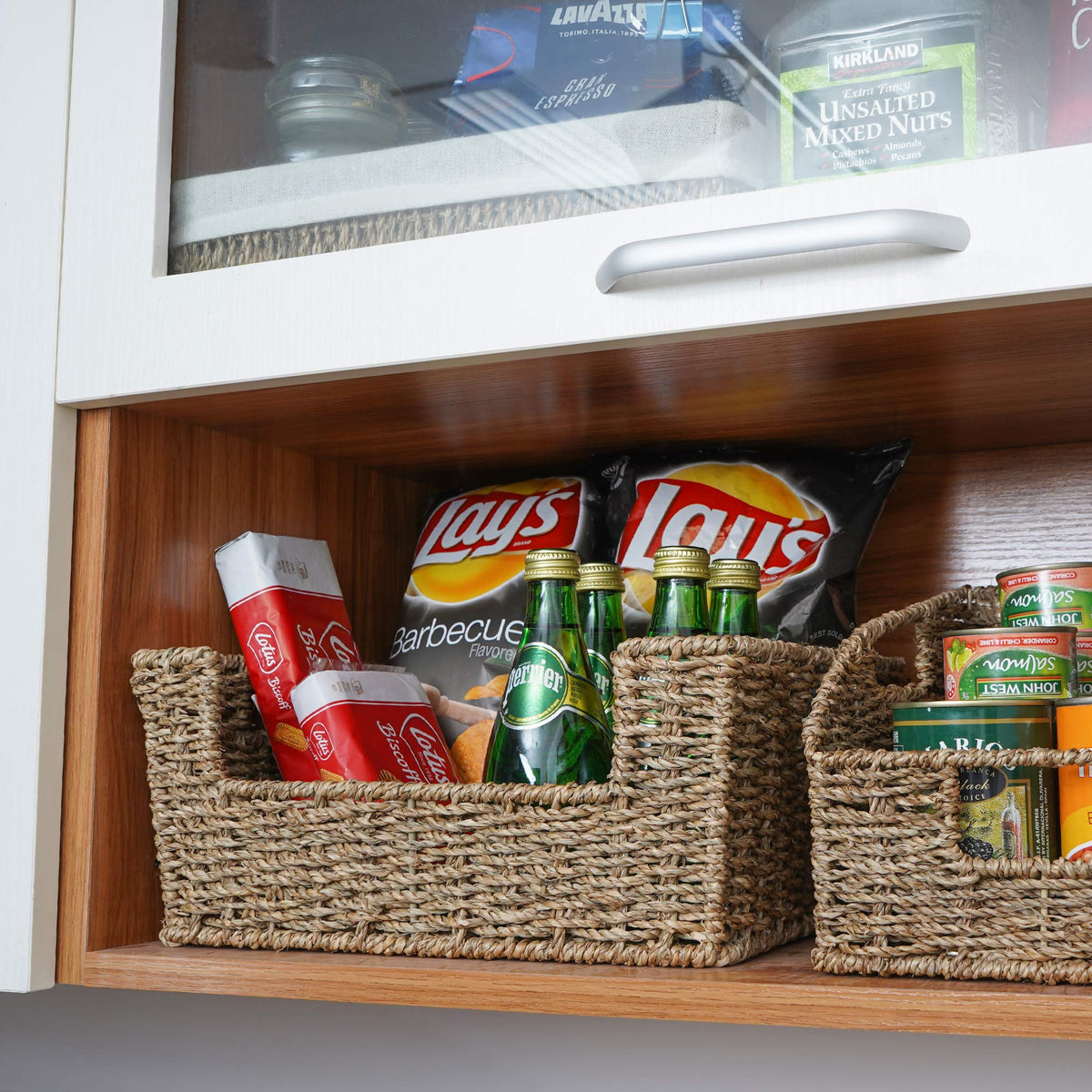 StorageWorks Seagrass Storage Baskets Hand-Woven Open-Front Bins with Handles 2 Pack