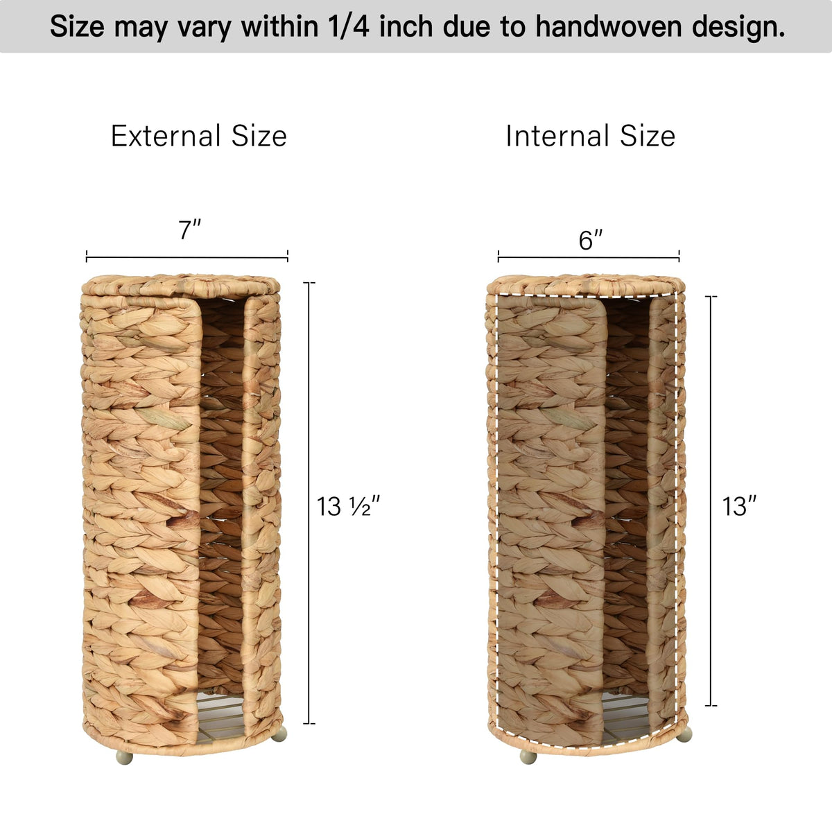 Storageworks Water Hyacinth Free Standing Toilet Paper Holder Stand For Bathroom, 3 Rolls Of Toilet Tissue Storage, Toilet Roll
