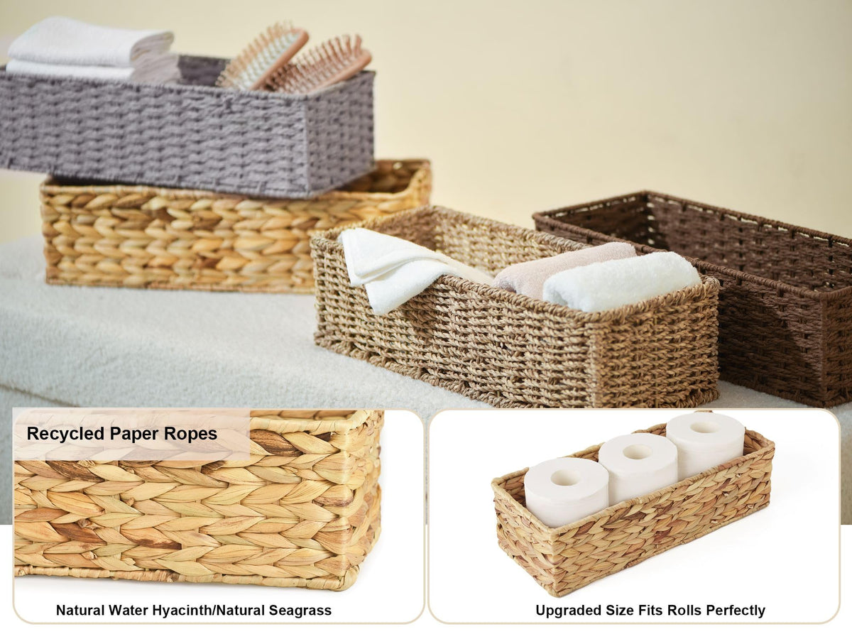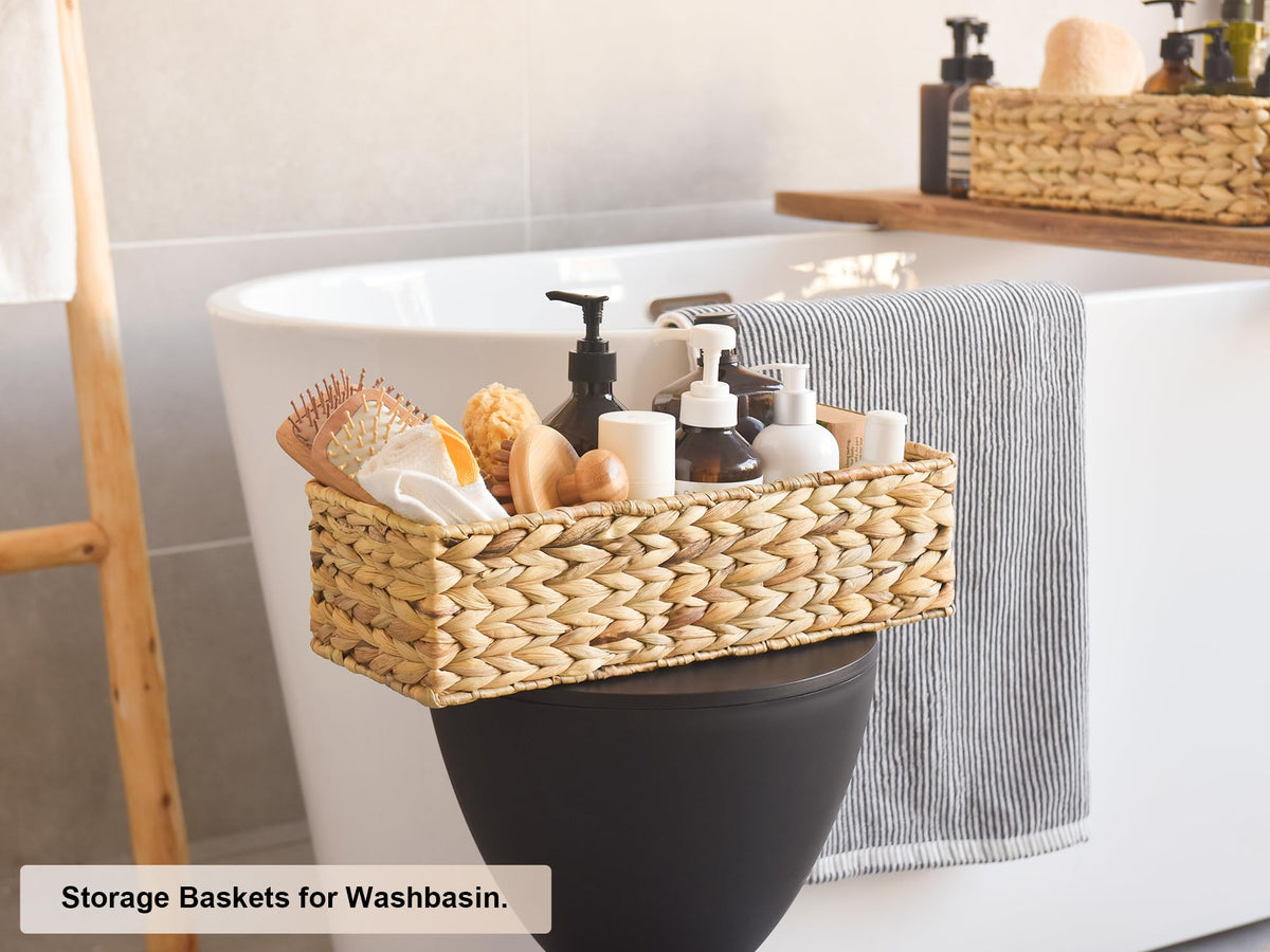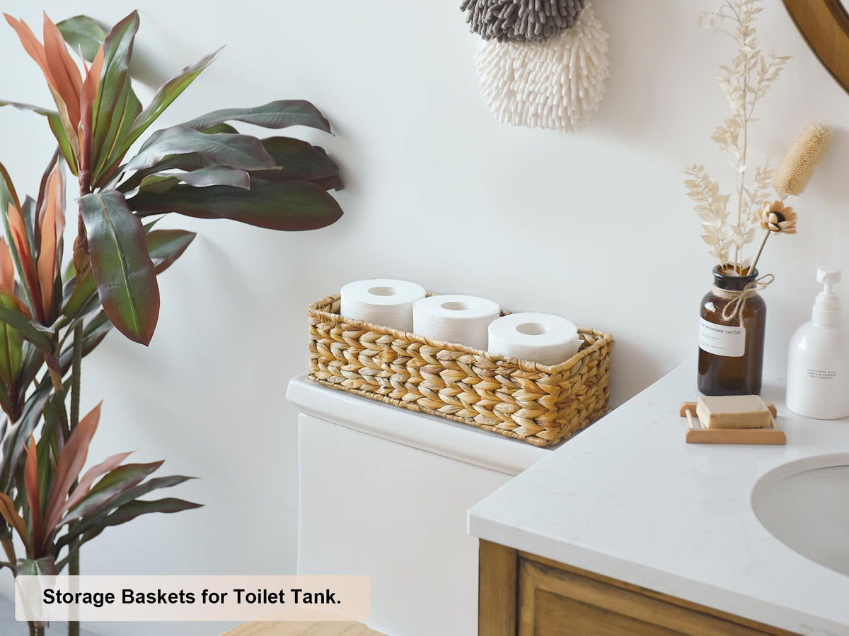Storageworks Wicker Tank Topper Basket, Water Hyacinth Storage For Bathroom, 2 Pack