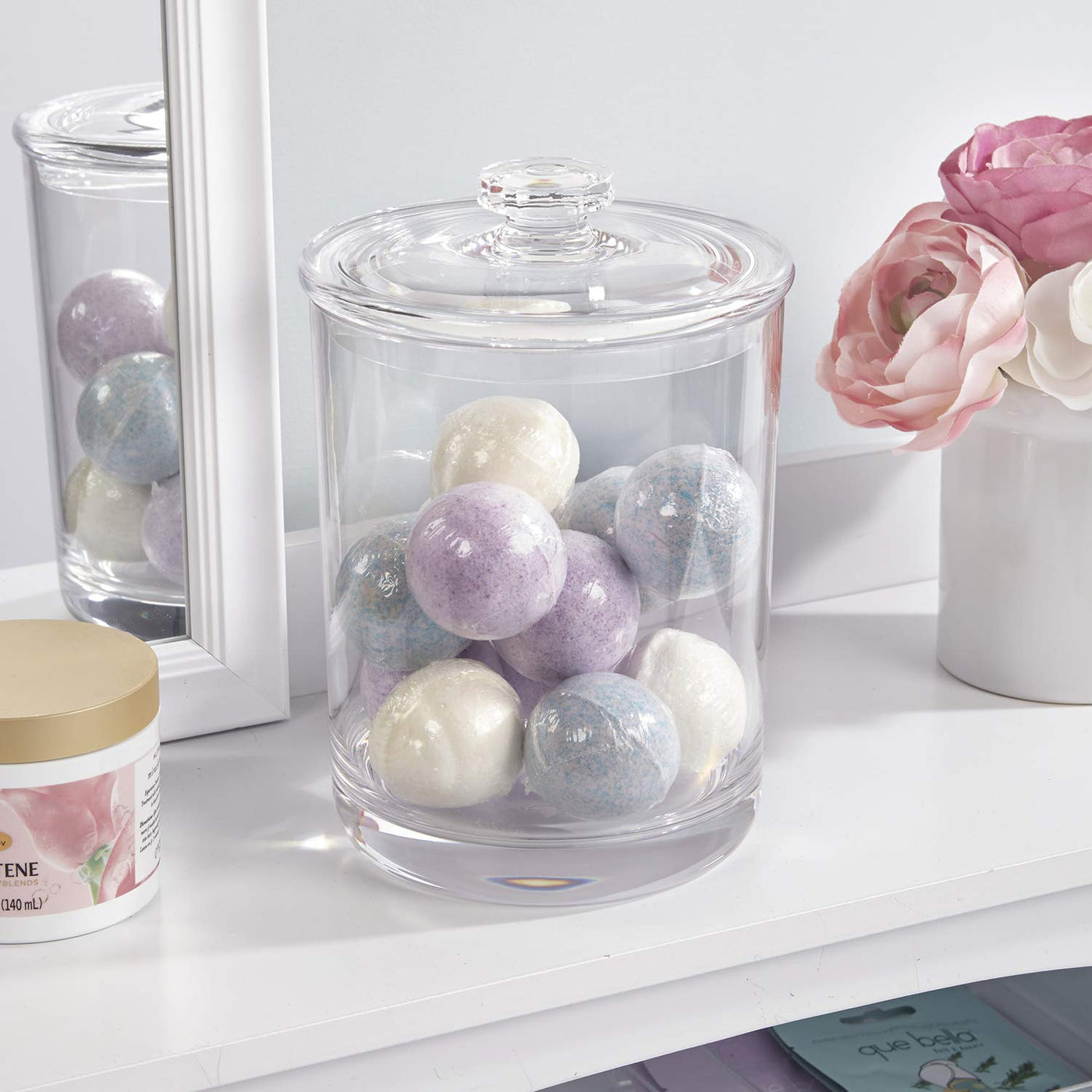 - Q: What style does the jar complement? A: The jar features a classic yet stylish design that adds a decorative element to any bathroom or vanity decor.