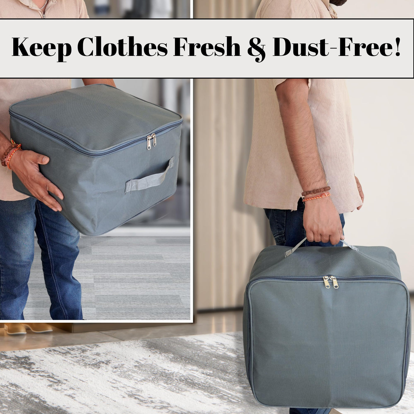 Storite 10 Pack Nylon Wardrobe Bag Underbed Moisture Proof Cloth Storage Organizer, Storage box for Clothes Saree Bags with Zipp