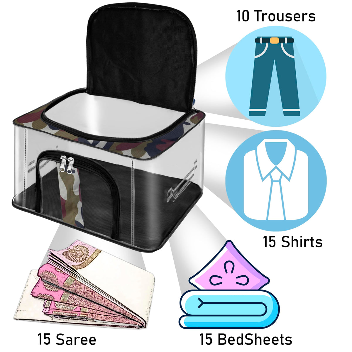 Storite 3 Pack Nylon 33 L Military Print Transparent Moisture Proof Storage Box For Clothes Closet Wardrobe Organizer For Clothes Saree Bags With Carry Handle - (44 X 31 X 24 Cm)