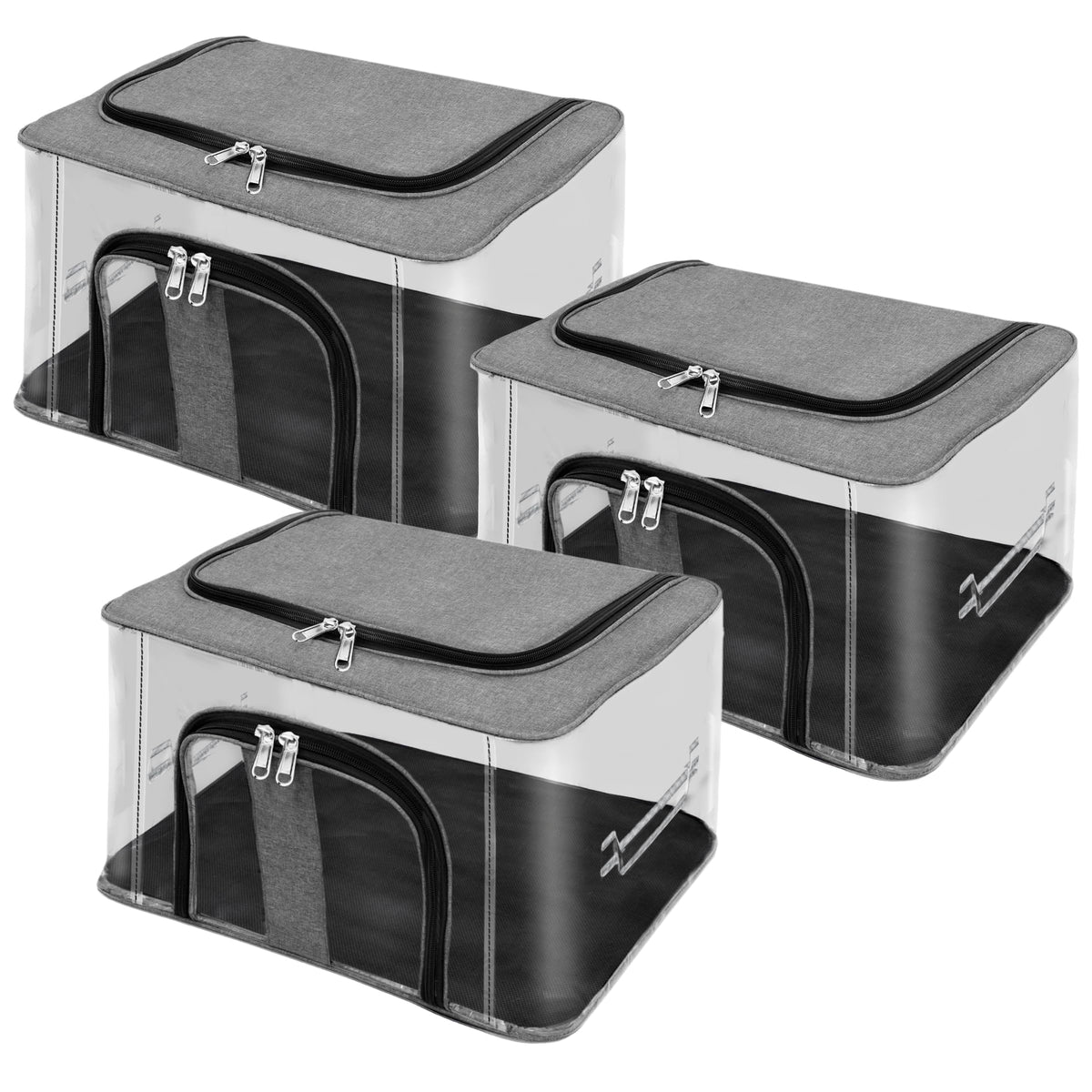 Storite 3 Pack Nylon 33 L Pvc Transparent Moisture Proof Storage Box For Clothes Closet Wardrobe Organizer For Clothes Saree Bag