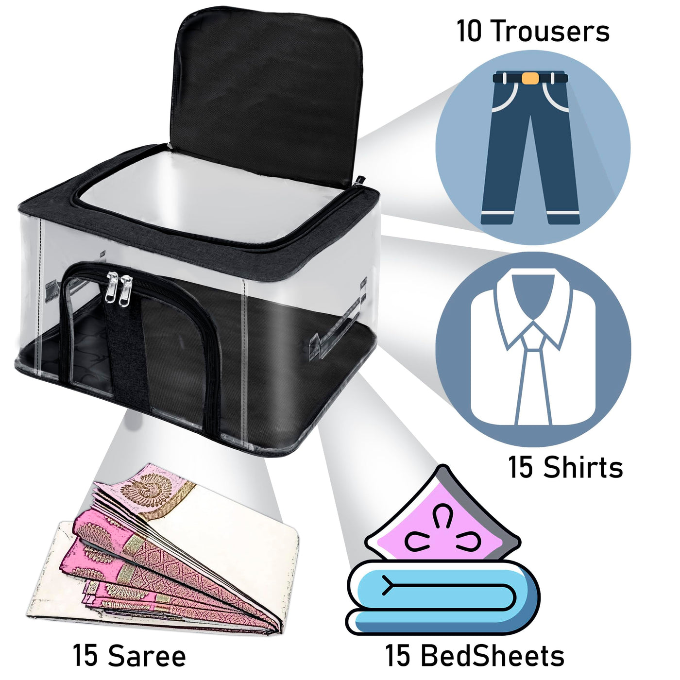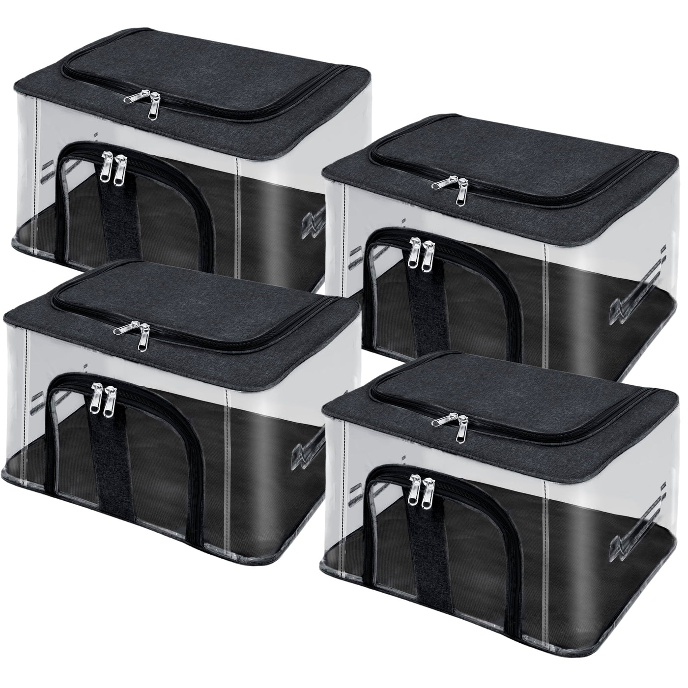 Storite 4 Pack Nylon 33 L Pvc Transparent Moisture Proof Storage Box For Clothes Closet Wardrobe Organizer For Clothes With Carry Handle - (Black, 44 X 31 X 24 Cm)