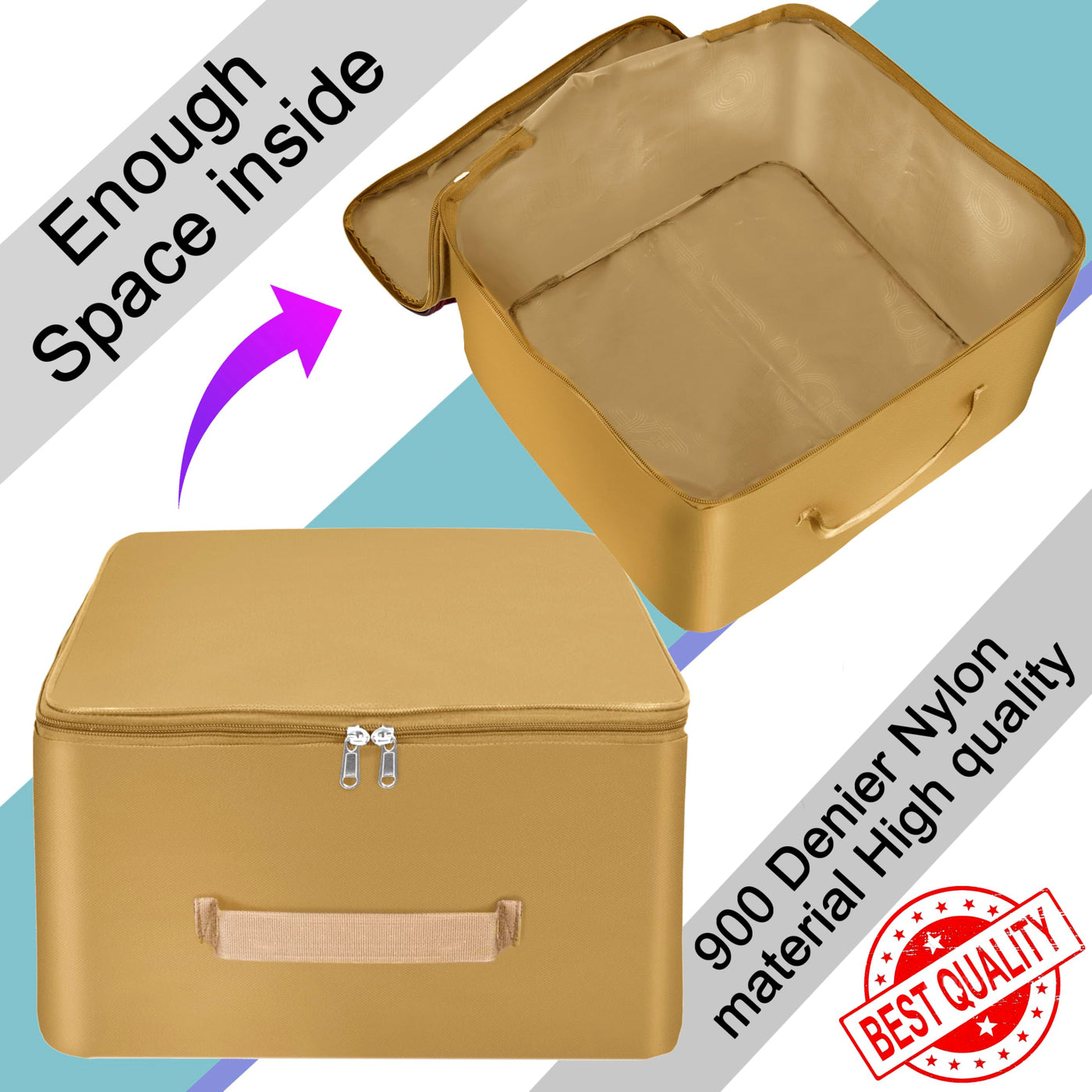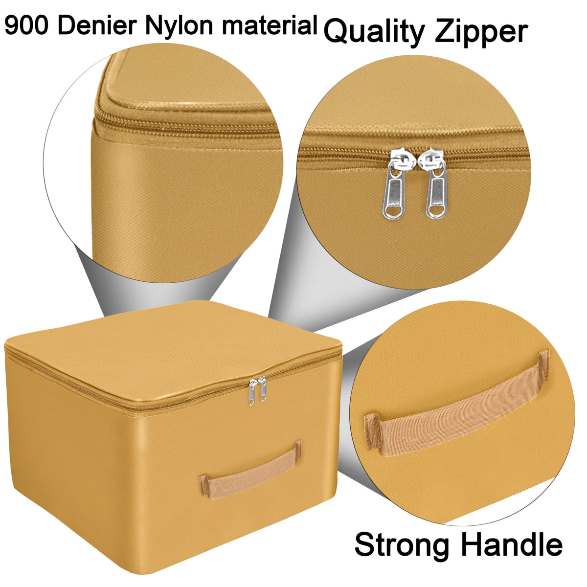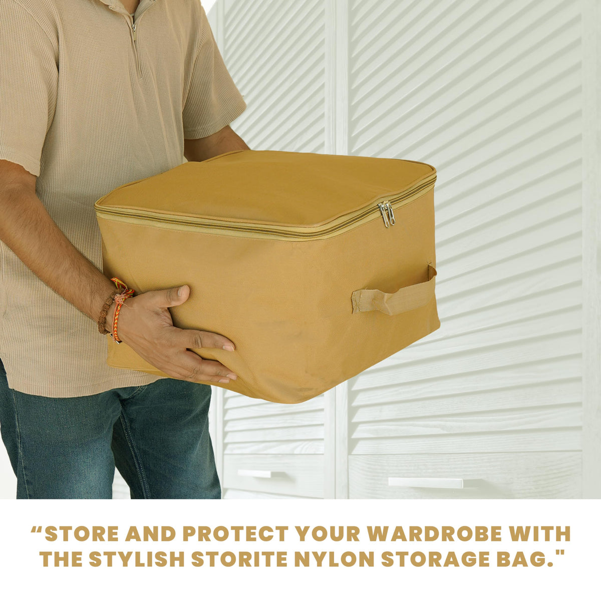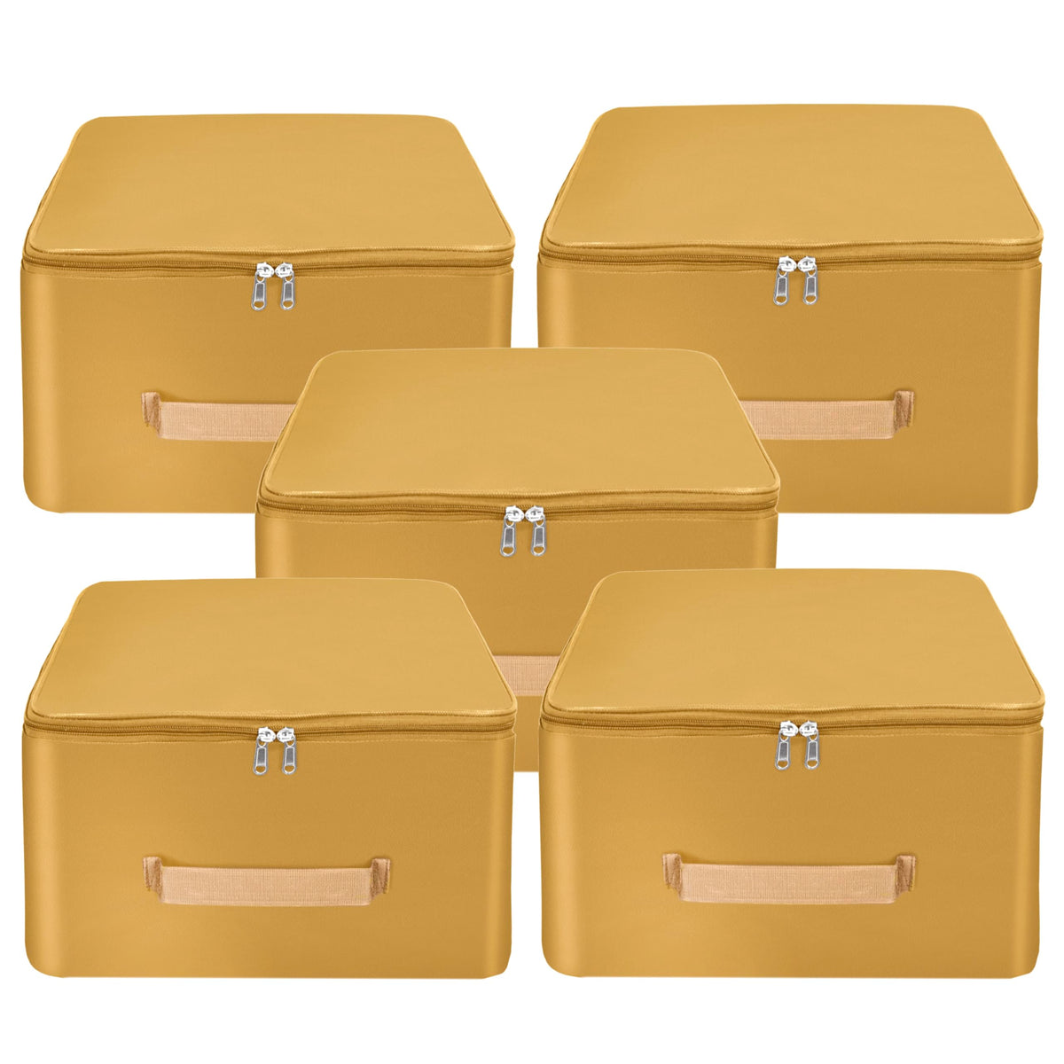 Storite 5 Pack Nylon Wardrobe Bag Underbed Moisture Proof Cloth Storage Organizer, Storage Box For Clothes Saree Bags With Zippered Closure & Handle (Mustard, 38X35.5X24 Cm) Square