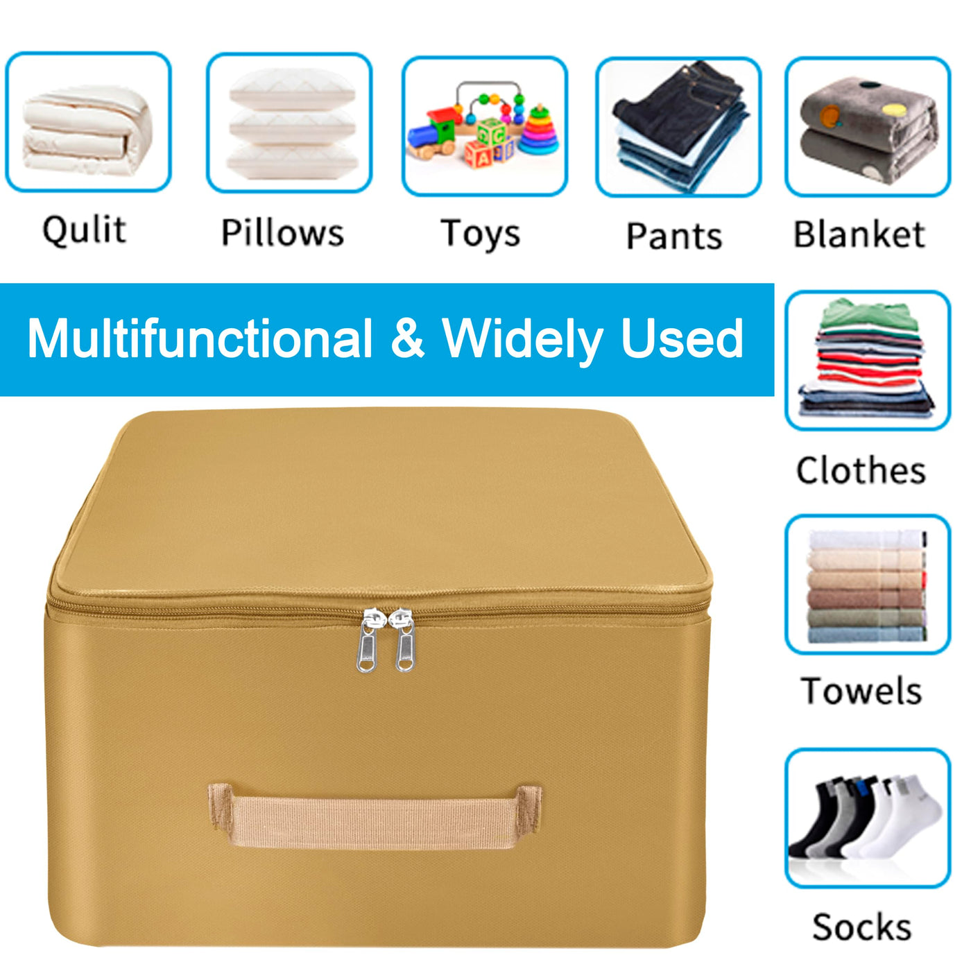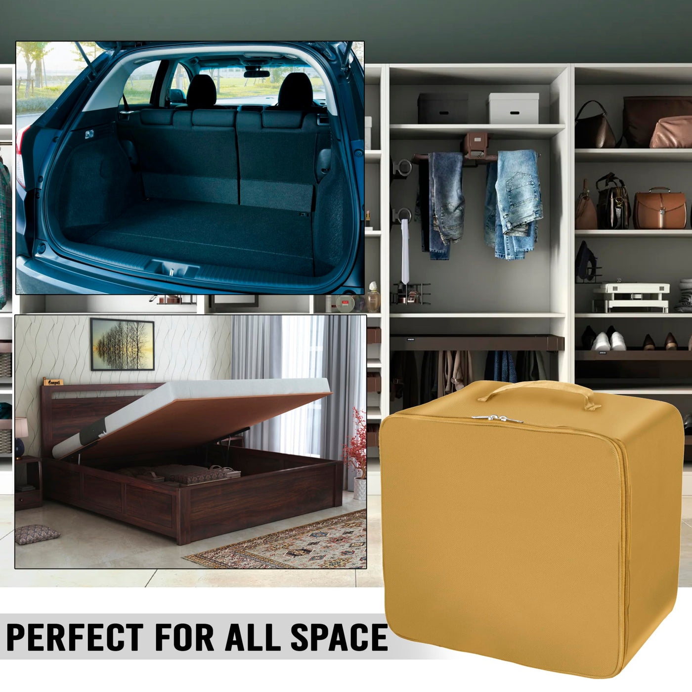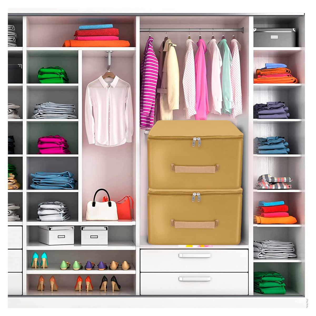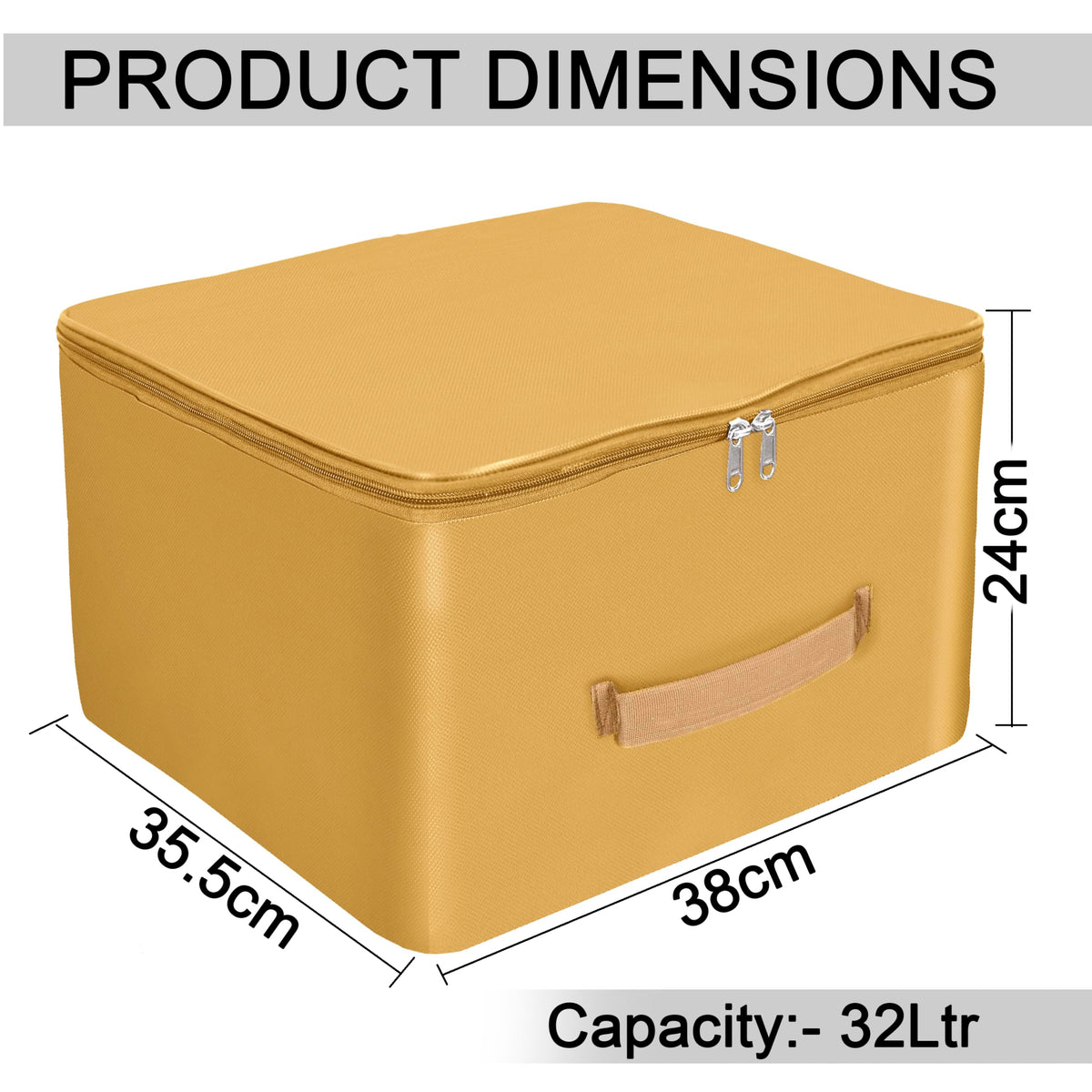 Storite 5 Pack Nylon Wardrobe Bag Underbed Moisture Proof Cloth Storage Organizer, Storage Box For Clothes Saree Bags With Zippered Closure & Handle (Mustard, 38X35.5X24 Cm) Square