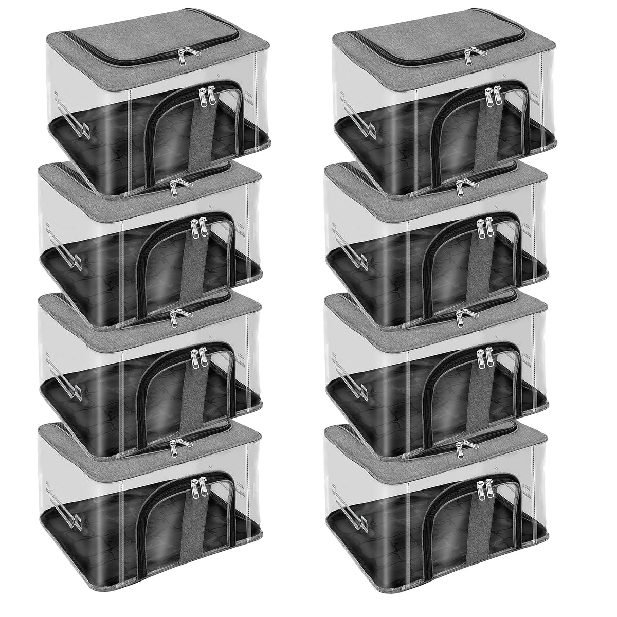 Storite 8 Pk Nylon 33 L Pvc Transparent Moisture Proof Storage Box For Clothes Closet Wardrobe Organizer Bag For Clothes With Carry Handle & Transparent Window - (Grey, 44 X 31 X 24 Cm)