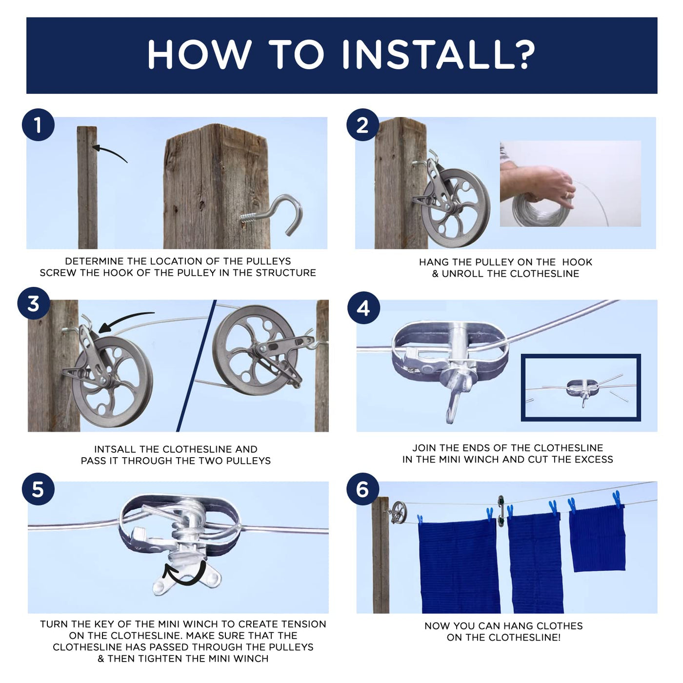 - Q: Is the clothesline easy to install? A: Yes, the kit comes with all necessary components including hooks and pulleys, making installation straightforward for most users.