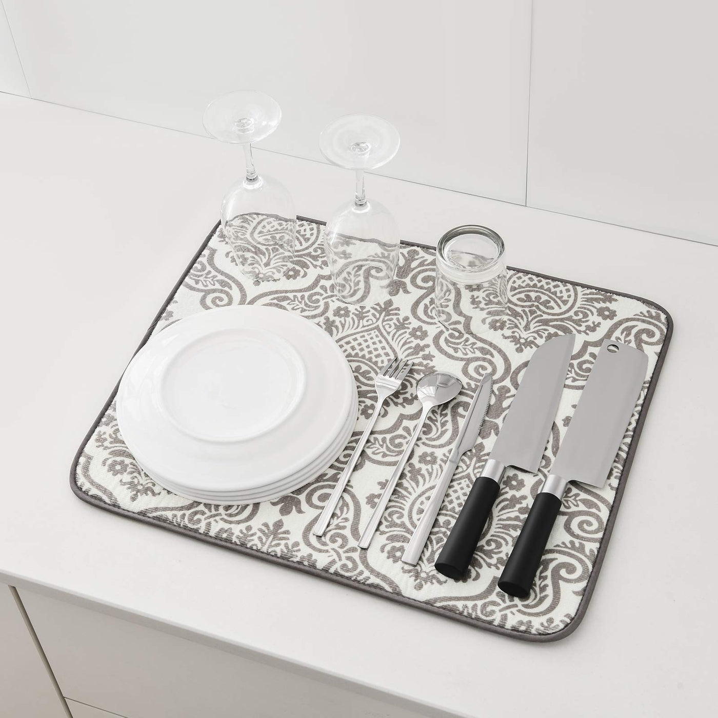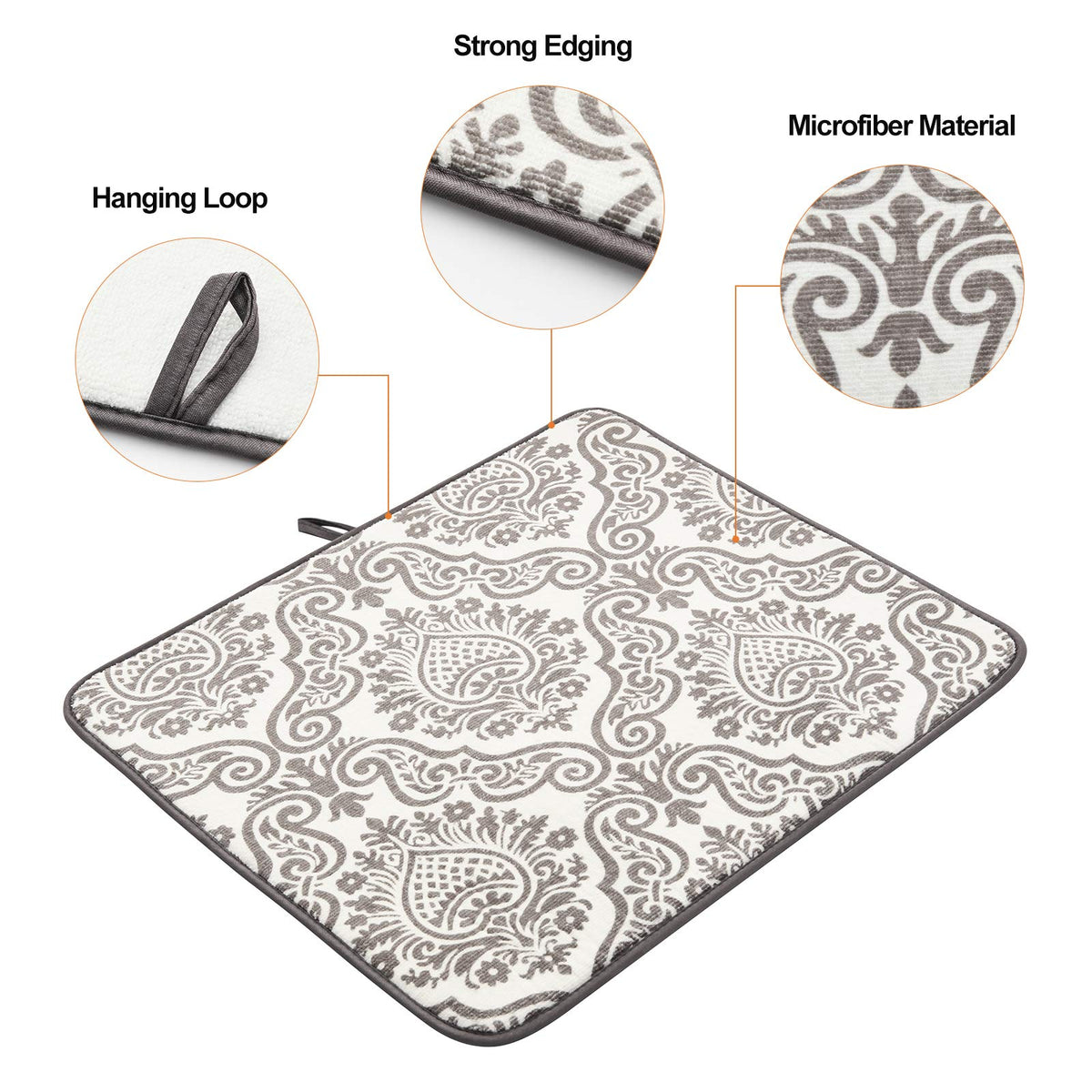 Subekyu Dish Drying Mats For Kitchen, Ultra Absorbent Microfiber Drying Mat, Dishes Drainer Pads 2 Pack, 19 By 15 Inch (Floral V