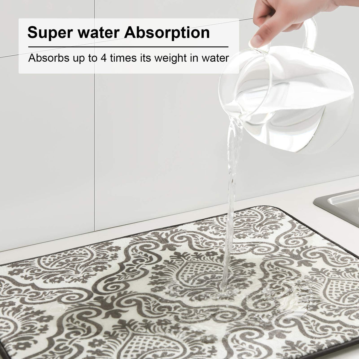 - Q: What is the absorbency capacity of these mats? A: The microfiber material can absorb up to four times its weight in water, effectively catching drips under dish racks.