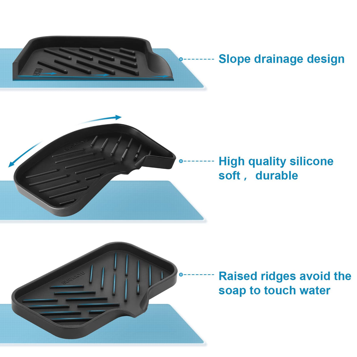 • Q: How does the drainage feature work? A: The tray has an automatic drainage design with raised ridges that allows fast water drainage, keeping the soap dry and clean.
