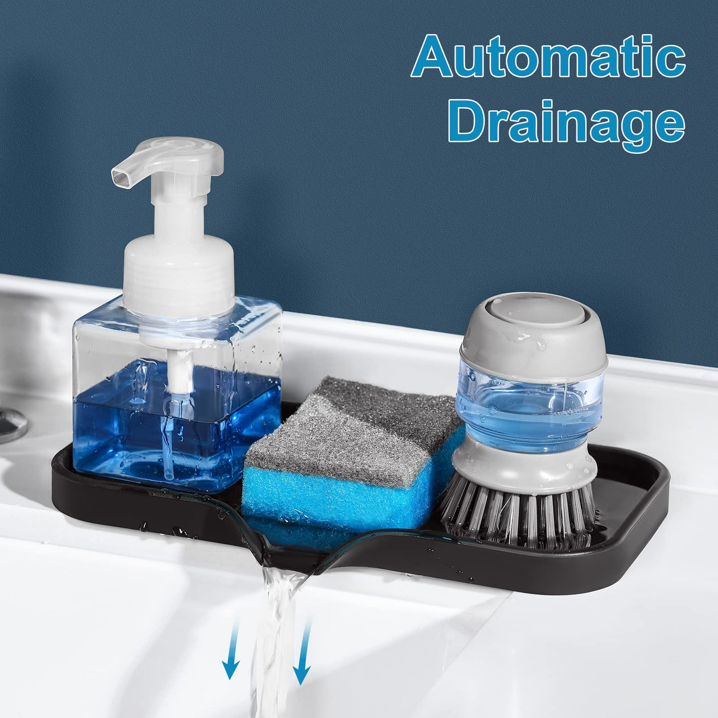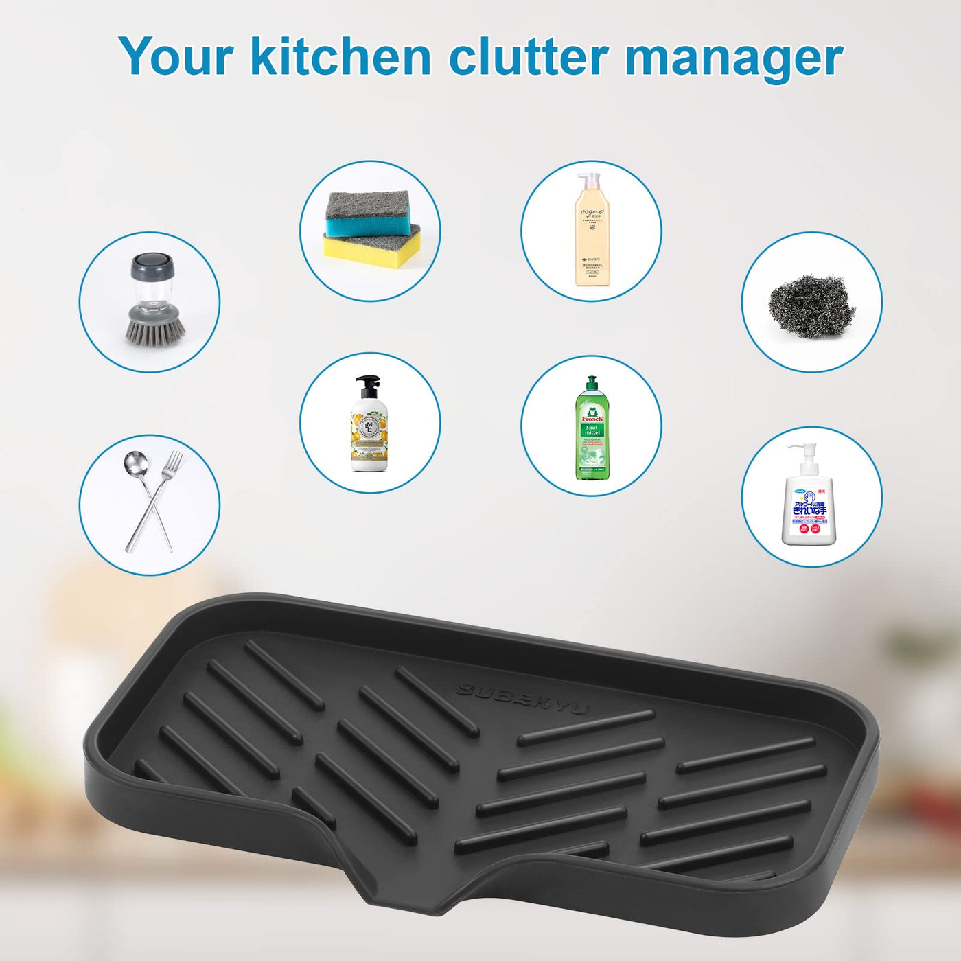 • Q: Can I store sponges and soap bottles on this tray? A: Yes, the tray is designed to hold brushes, sponges, and soap bottles, helping to keep your kitchen counter organized.