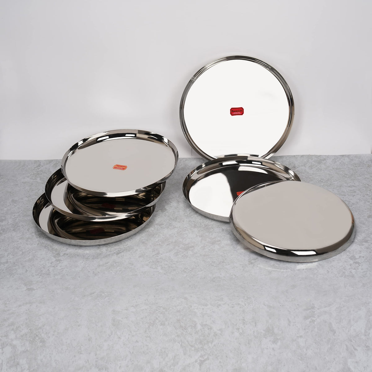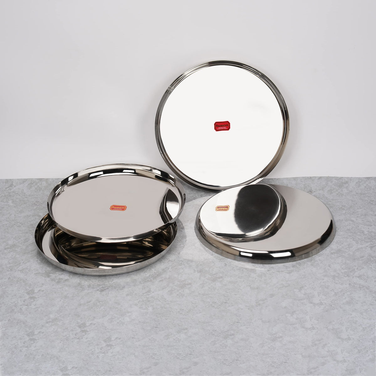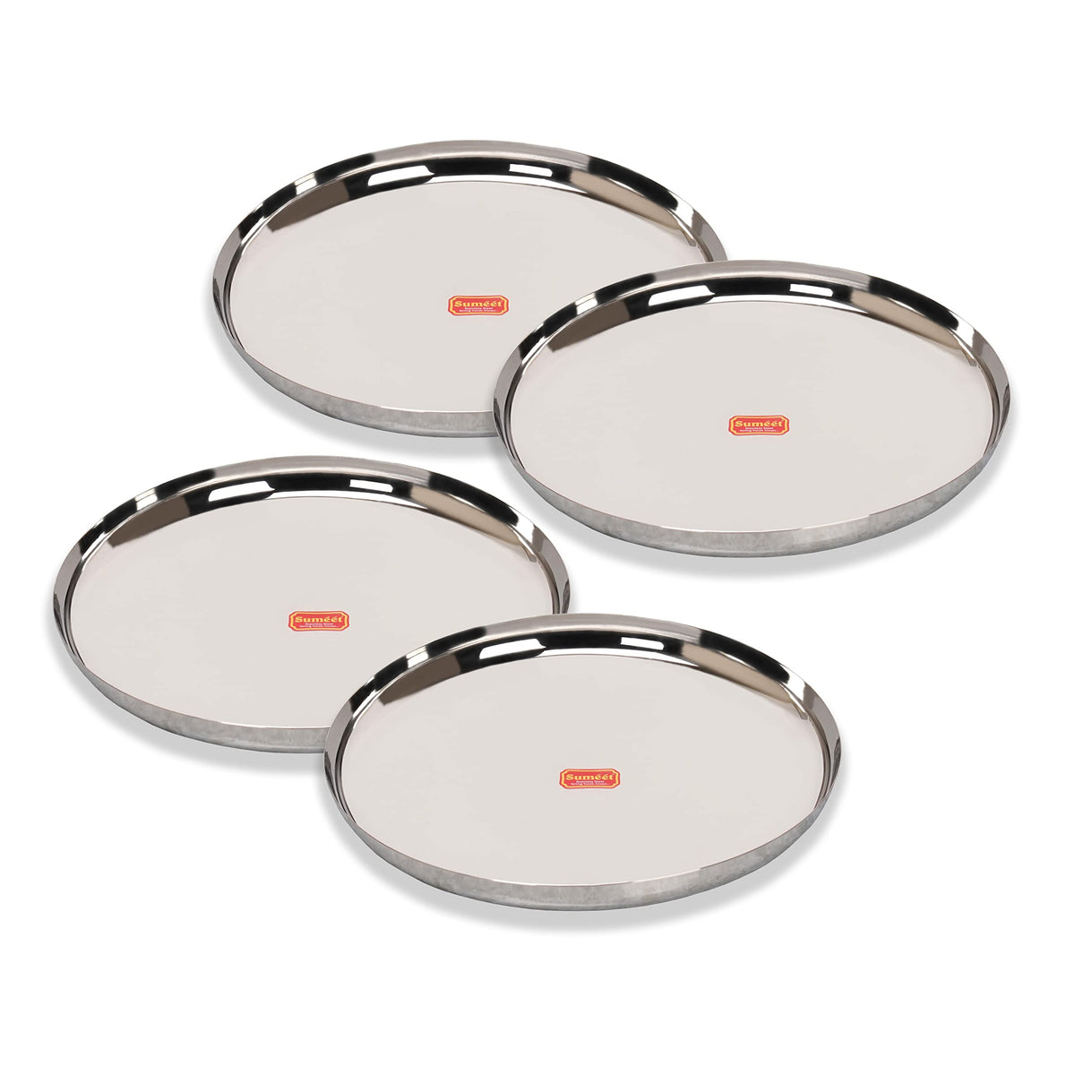 Sumeet Stainless-Steel Apple Shape Heavy Gauge Dinner Plates with Mirror Finish-34.6cm Dia, Set of 4pc, Silver