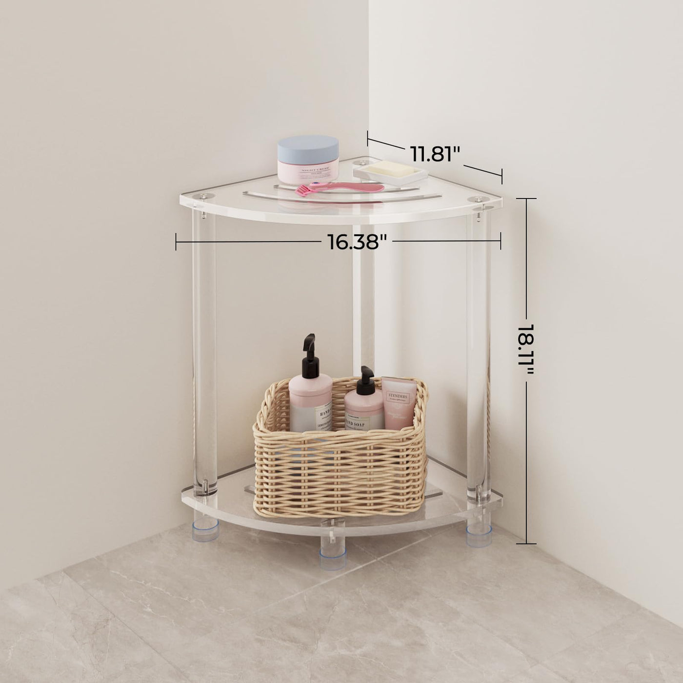 - Q: What are the dimensions of the Sumerflos Acrylic Corner Shower Stool? A: The dimensions of the Sumerflos Acrylic Corner Shower Stool are 11.81 inches deep, 11.81 inches wide, and 18.11 inches high.