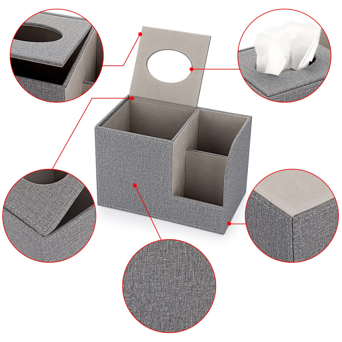 Sumnacon Square Linen Tissue Box Cover - Decorative Cube Tissue Box Holder With Side Organizer, Modern Tissue Box For Living Roo