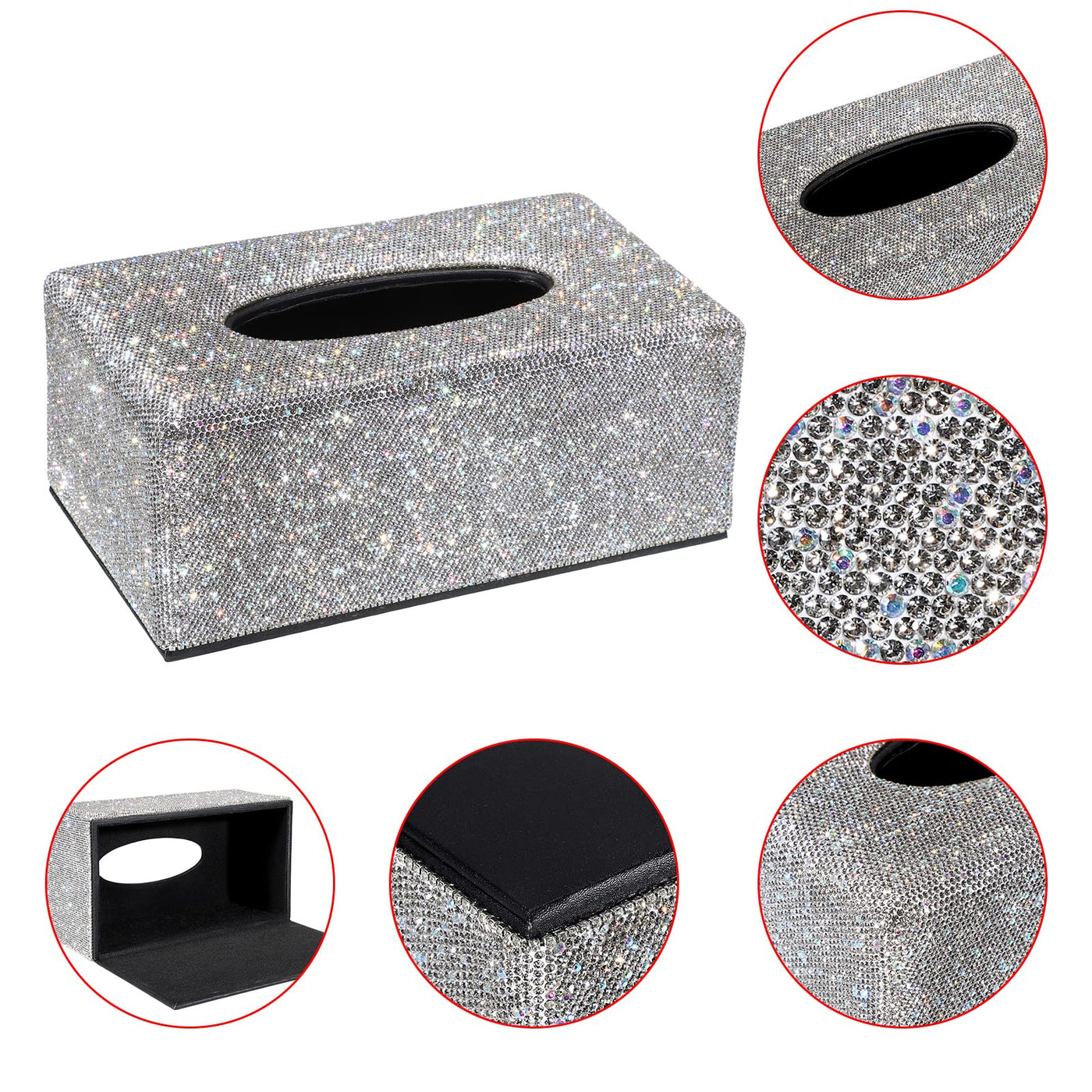 - Q: What is included in the package? A: The package includes one rectangular bling tissue box cover.