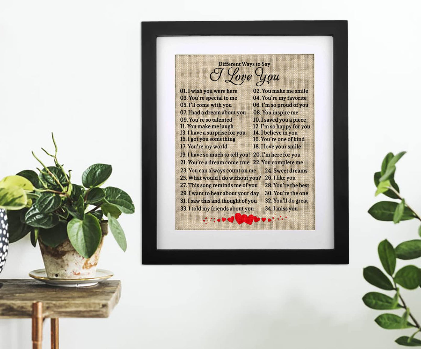 Sunbmo Valentine'S Day, Birthday, Anniversary Burlap Print Gifts For Couple - Ways To Say I Love You, Keepsake Gift For Husband