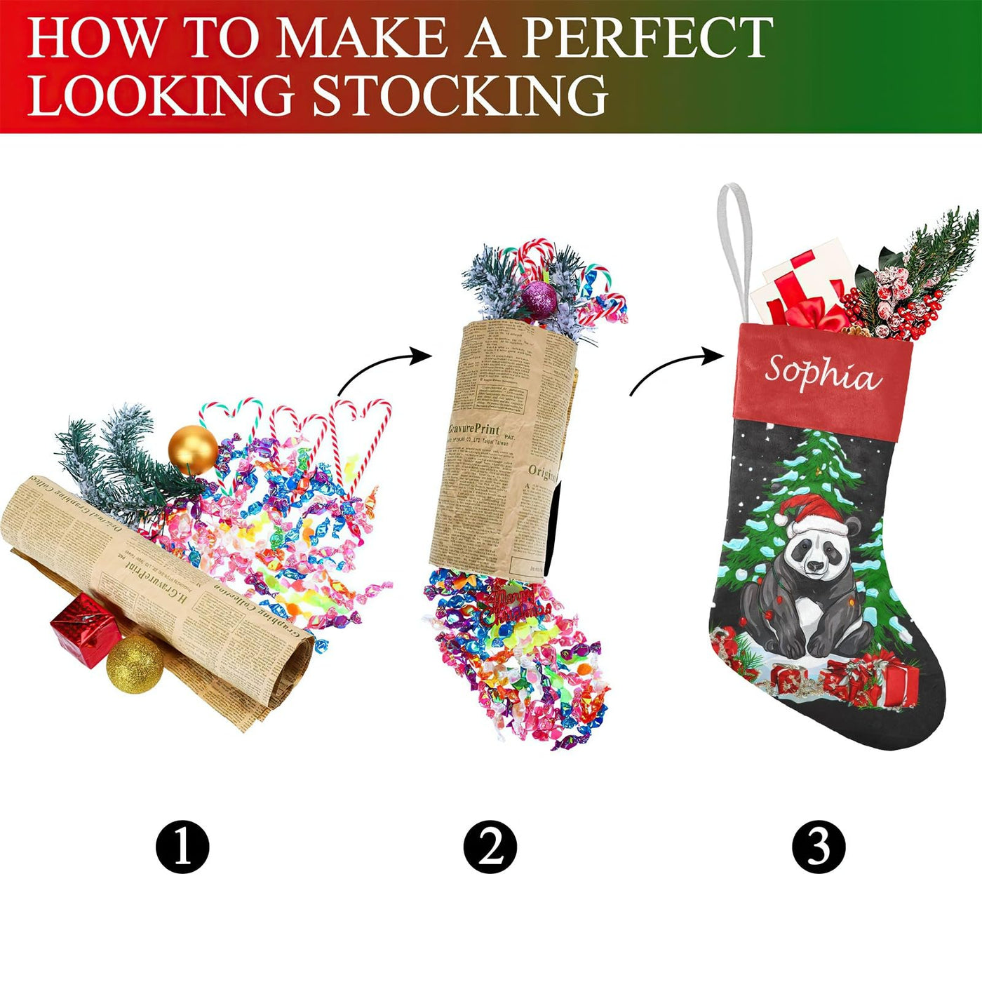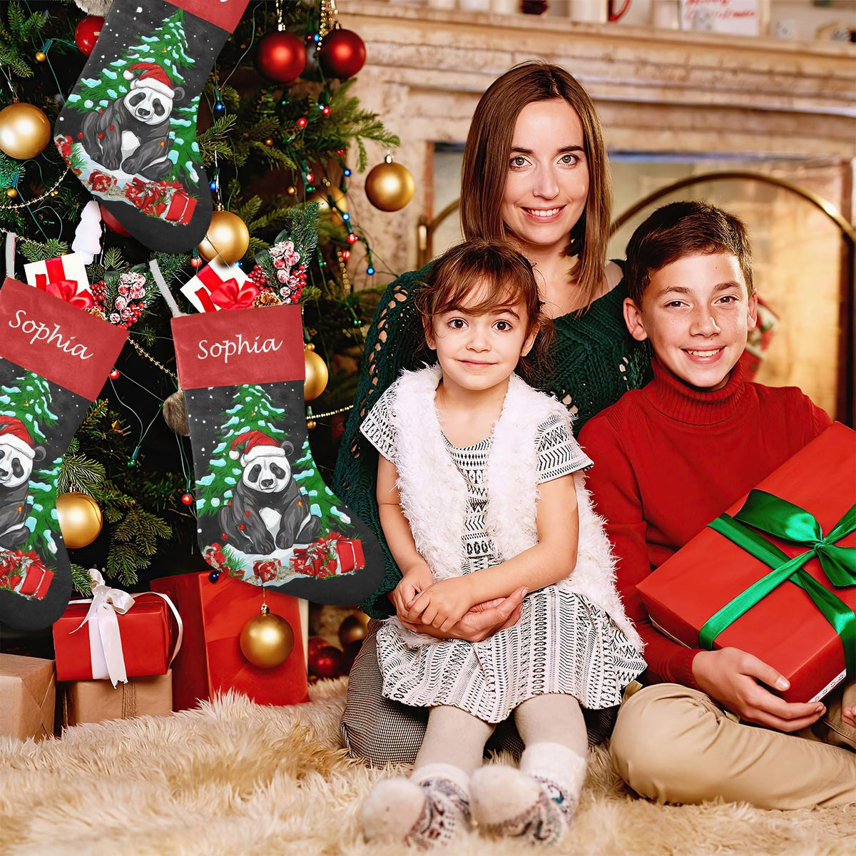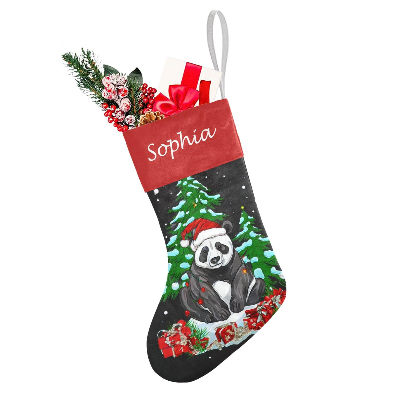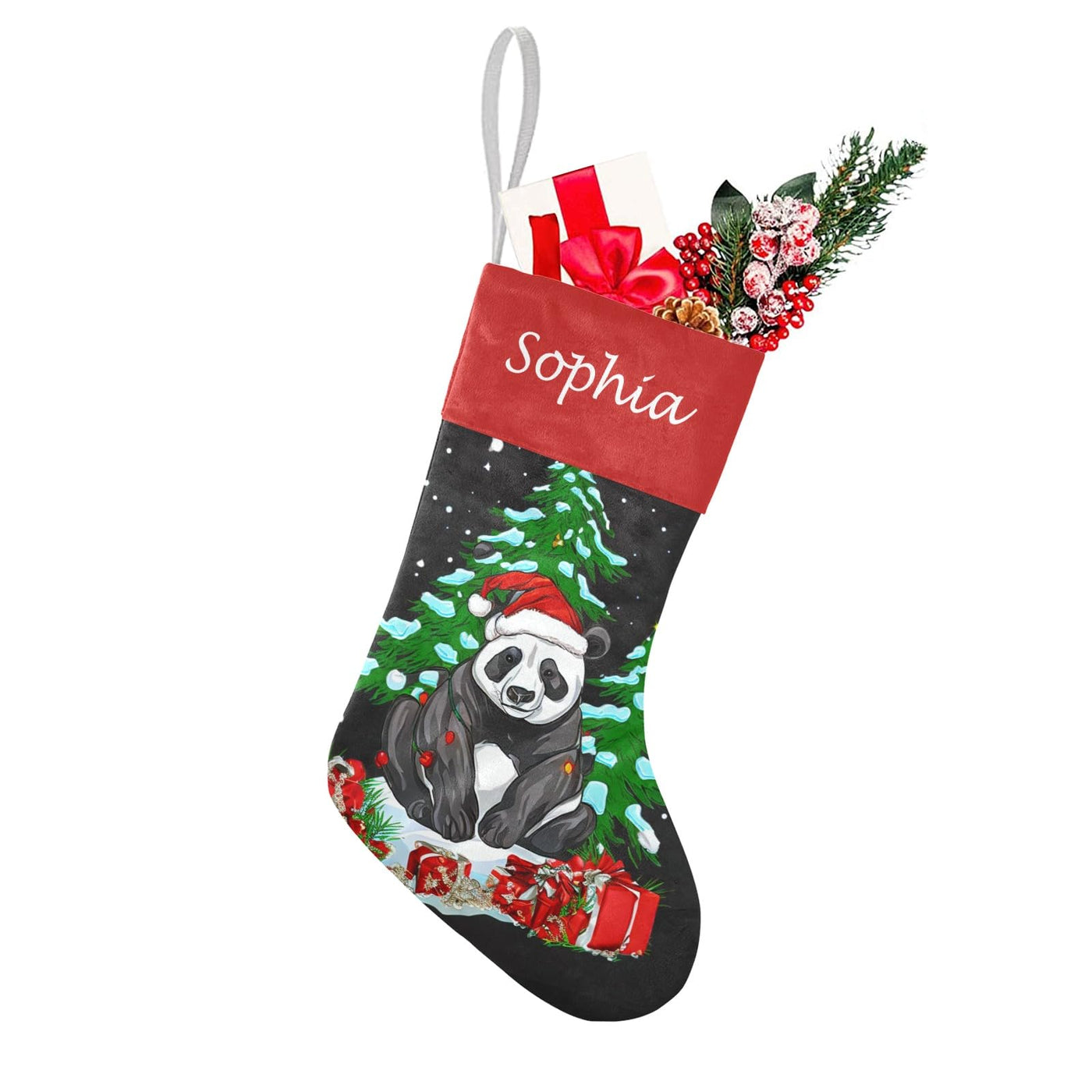 SunFancyCustom Custom Panda Animal Christmas Tree Hat Christmas Stocking Personalized with Name Xmas Family Holiday Birthday Gif