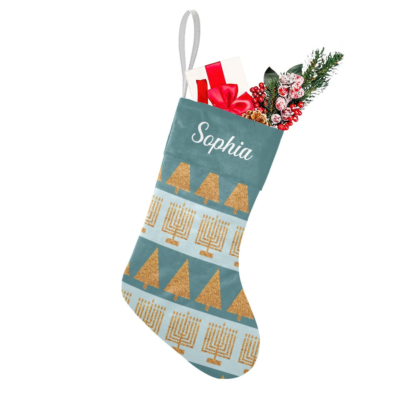 SunFancyCustom Personalized Merry Gold Holiday Stripes Pattern Custom Family Xmas Stockings with Name for Home Christmas Party O