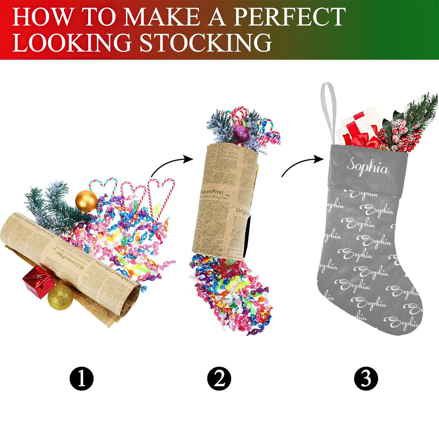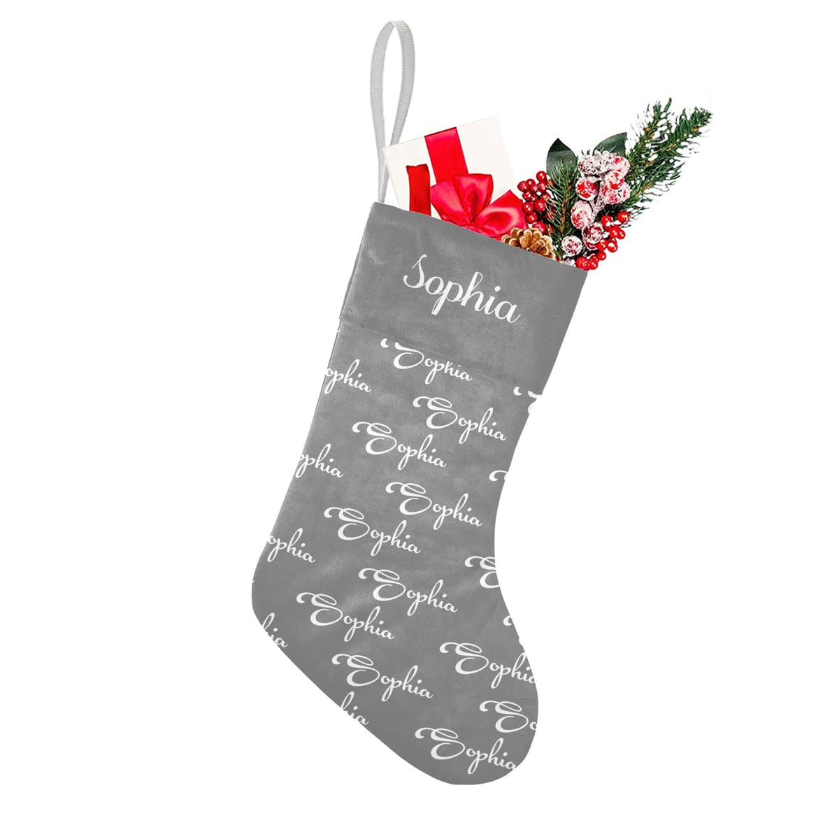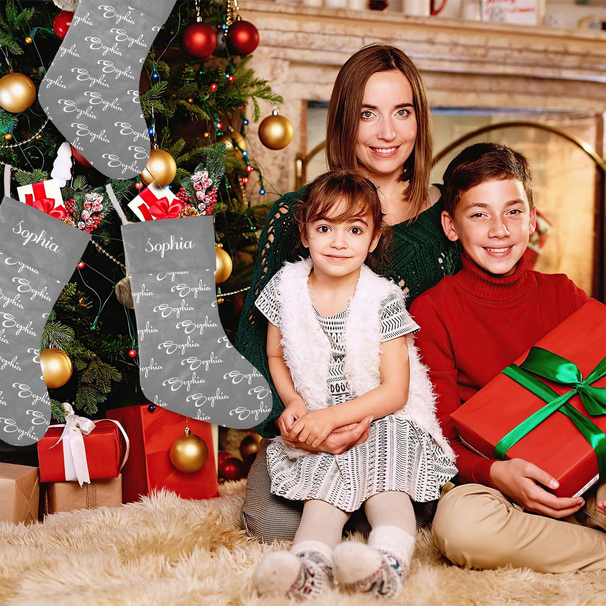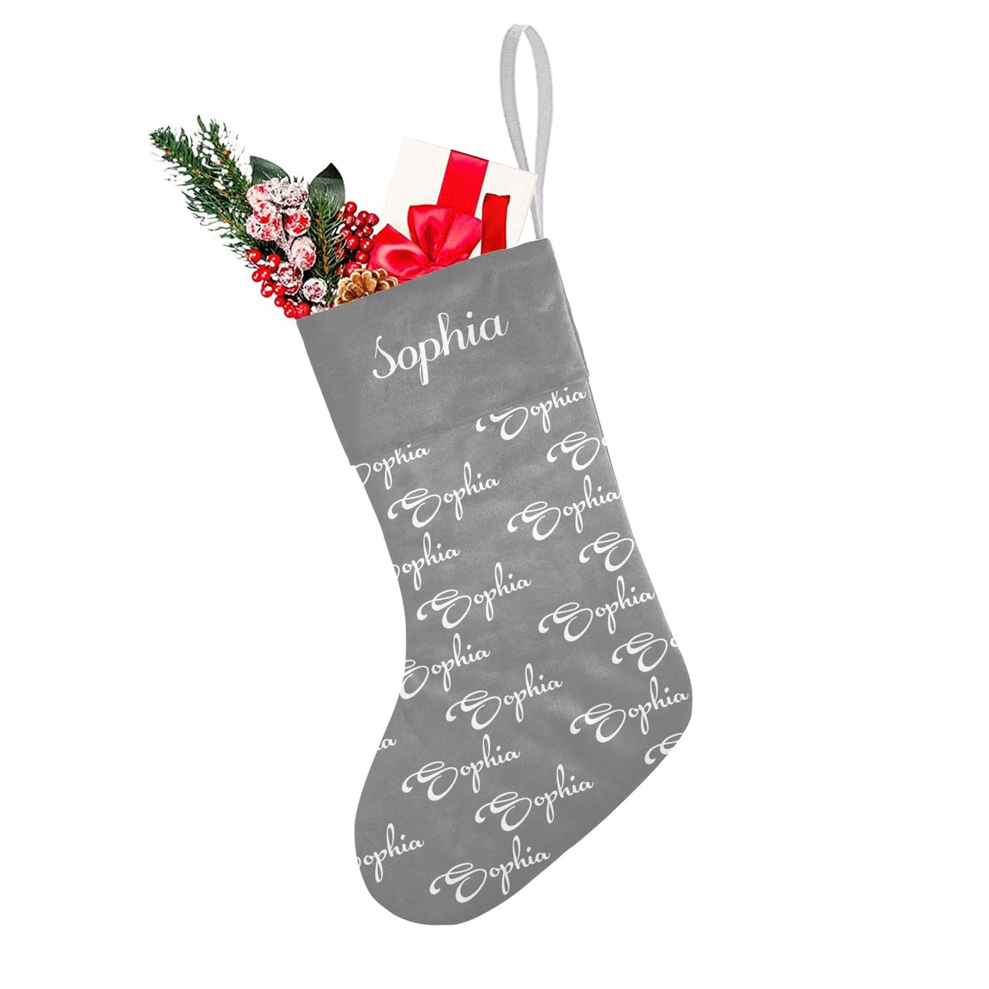 SunFancyCustom Personalized Name Gray Name Christmas Stockings Text Custom Xmas Holiday Pup Dog Gift Decor 17.52 x 7.87 Inch