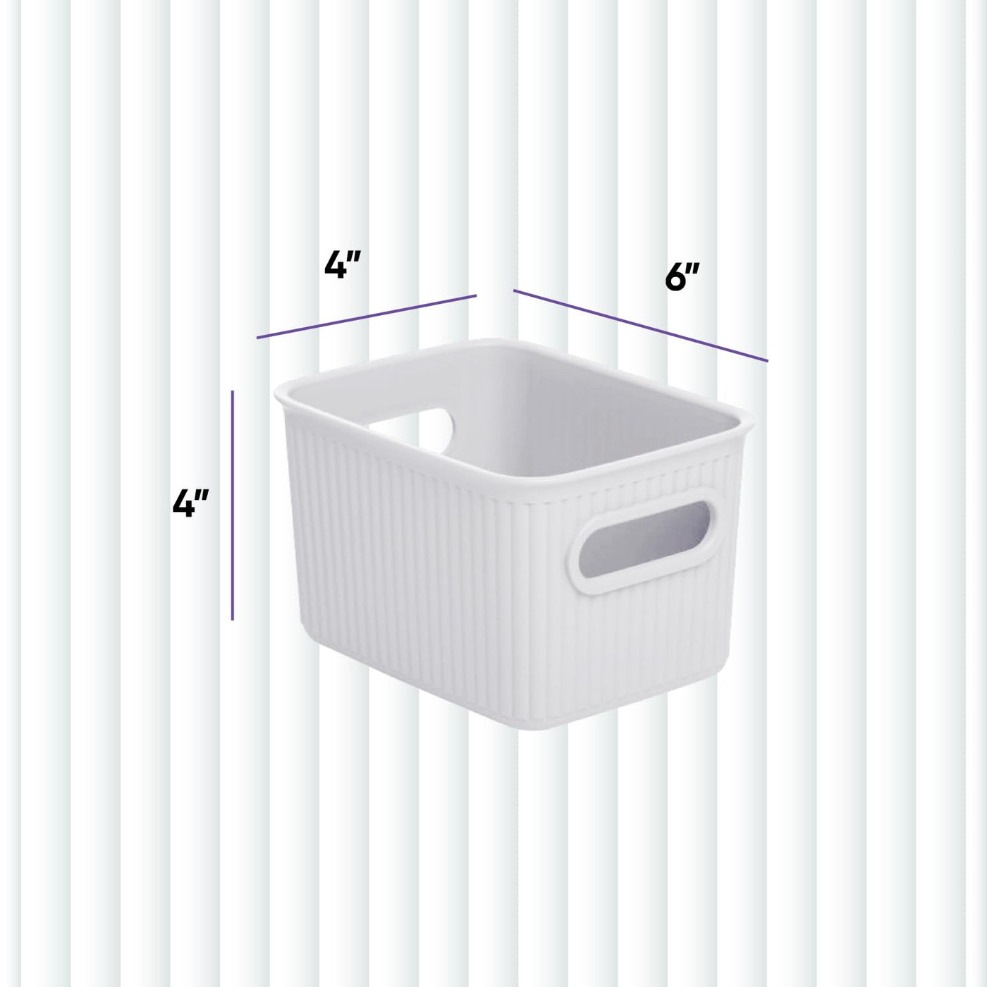 Superio Ribbed Collection - Decorative Plastic Open Home Storage Bins Organizer Baskets, Small White (4 Pack) Container Boxes Fo