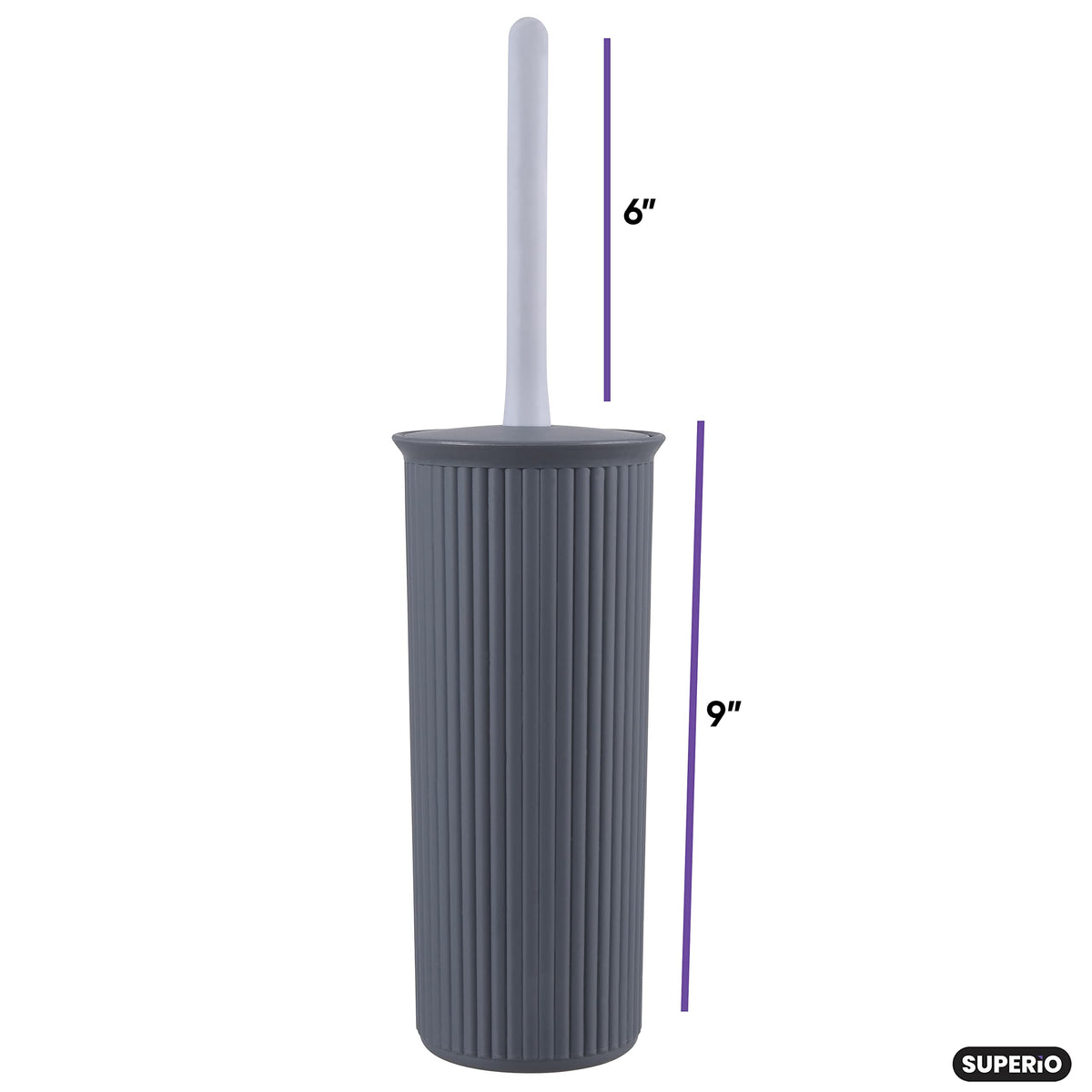 Superio Ribbed Collection - Decorative Plastic Toilet Bowl Brush And Holder Set, Grey (2 Pack) Cleaner Scrubber For Bathroom
