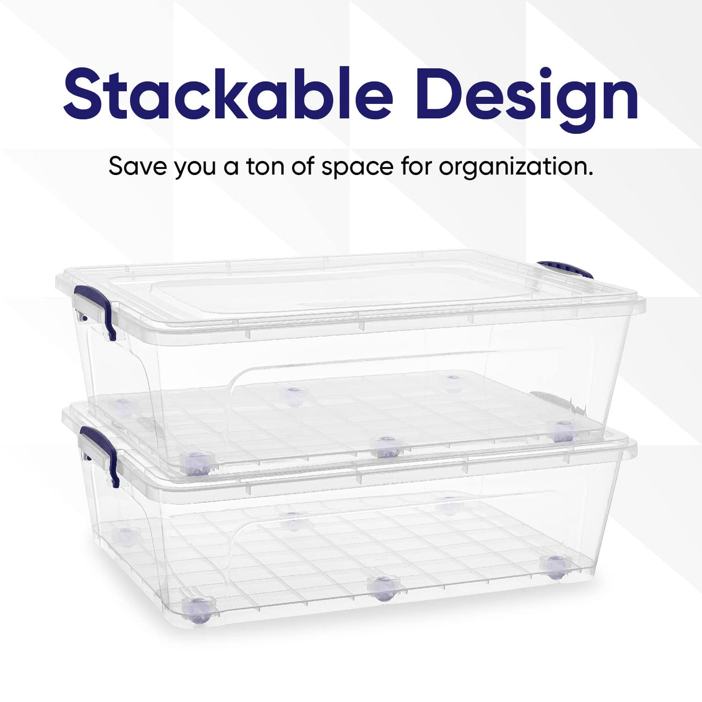 Superio Under Bed Clear Storage Bin with Lid Stackable Plastic Storage Container with Latch Closure (42 Quart- Under Bed)
