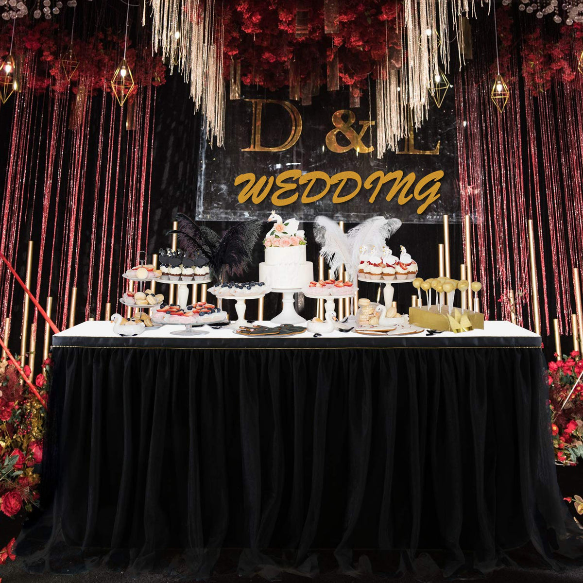 Suppromo 14 Black Tutu Table Skirt For Parties Ruffle Tulle Table Skirt For Black Gold Theme Birthday Party Graduation Wedding B