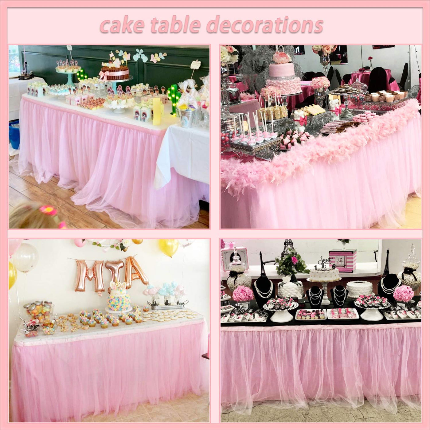 Suppromo 6Ft Pink Tulle Table Skirt Baby Shower Tablecloth For Rectangle Tables Or Round Tables Pink Ruffle Tutu Table Skirts Fo