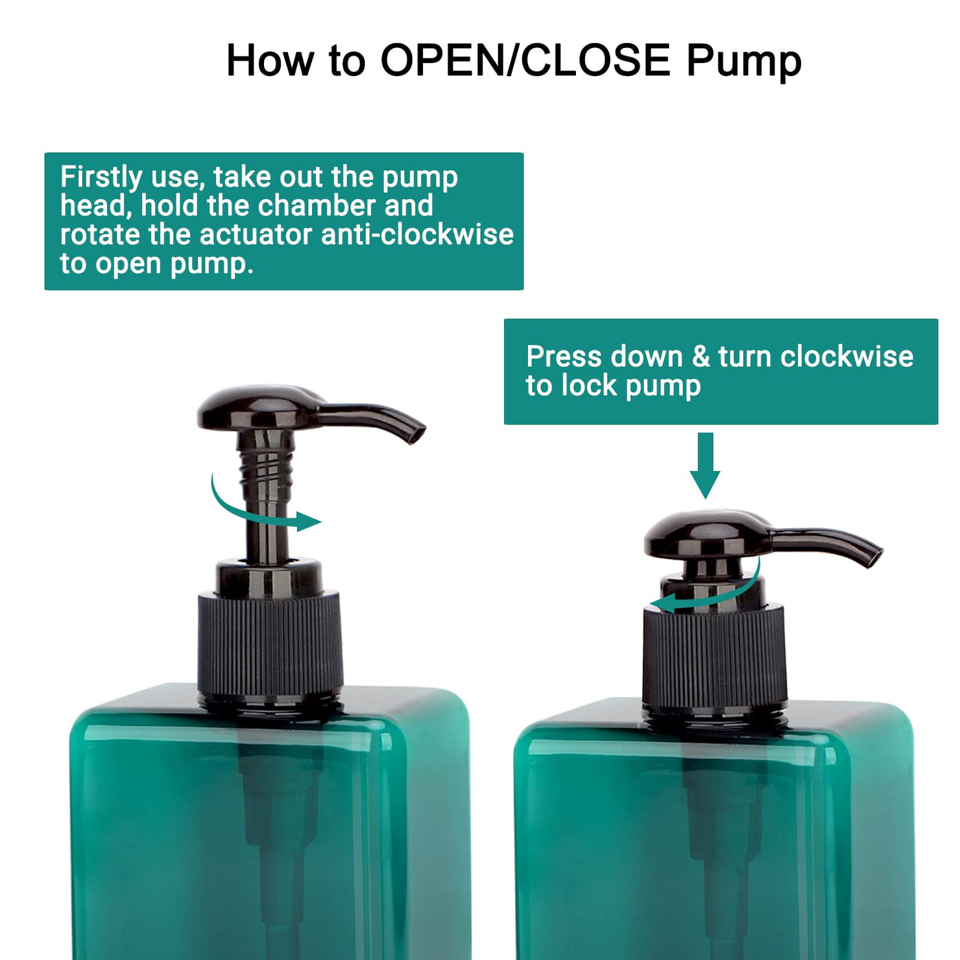 - Q: How do I prevent leaks from the pump dispensers? A: To prevent leaks, press down on the pump and twist it clockwise to close. To open, twist it anti-clockwise.