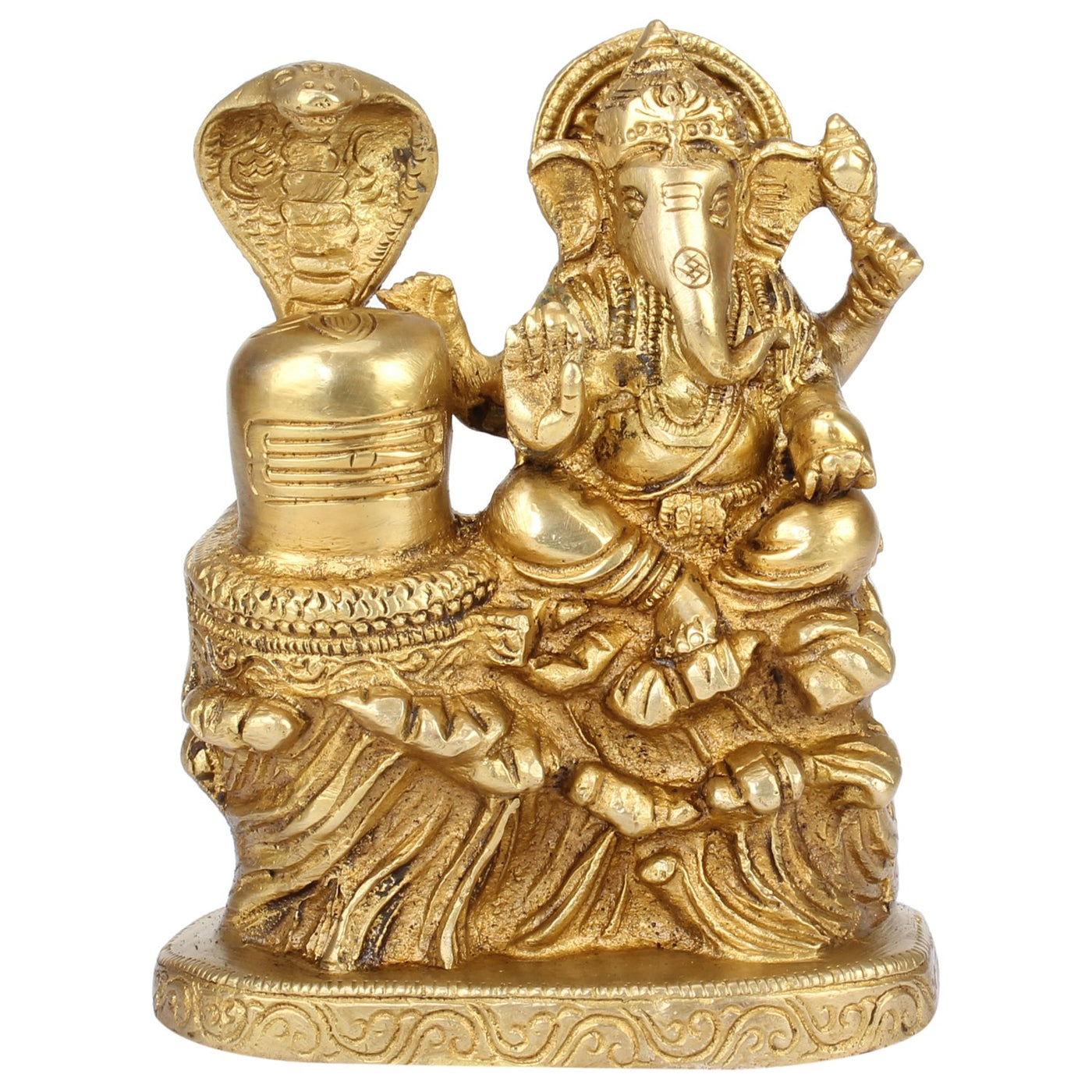Svarup Brass Ganesh Ji With Shivling Ganesha With Shiva Shivling Ganpati Murti Idol Statue Sculpture 5 Inches