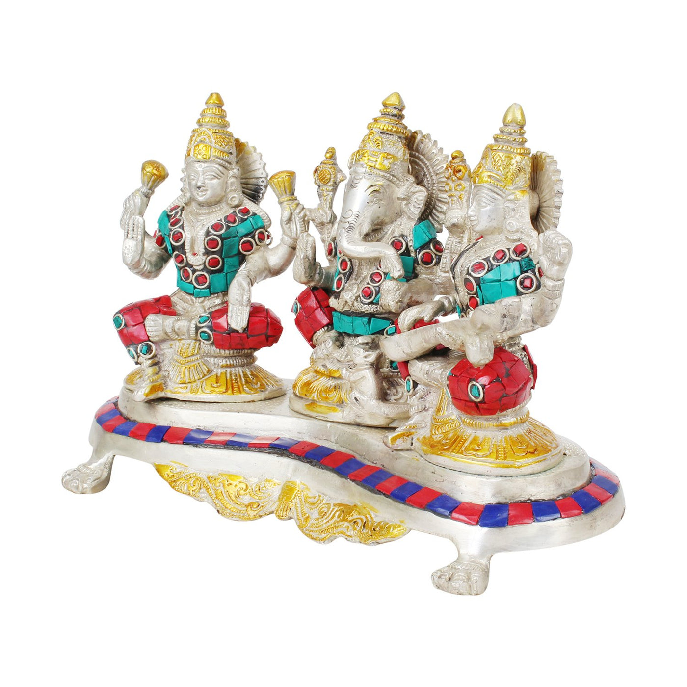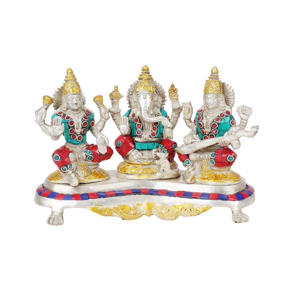 Svarup Brass Lakshmi Ganesha Saraswati Laxmi Ganesh And Sarasvati Idol For Diwali Pooja Home Decor (Length 9.5 Inch Weight 3.30 Kg Multicolor)