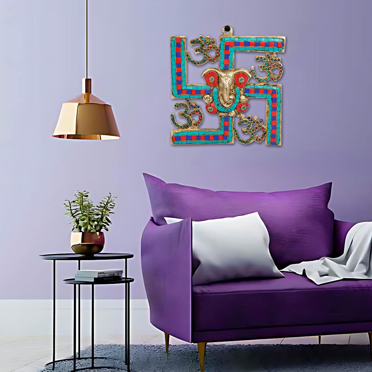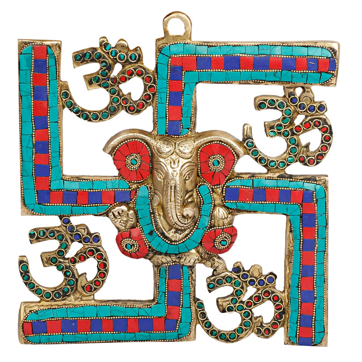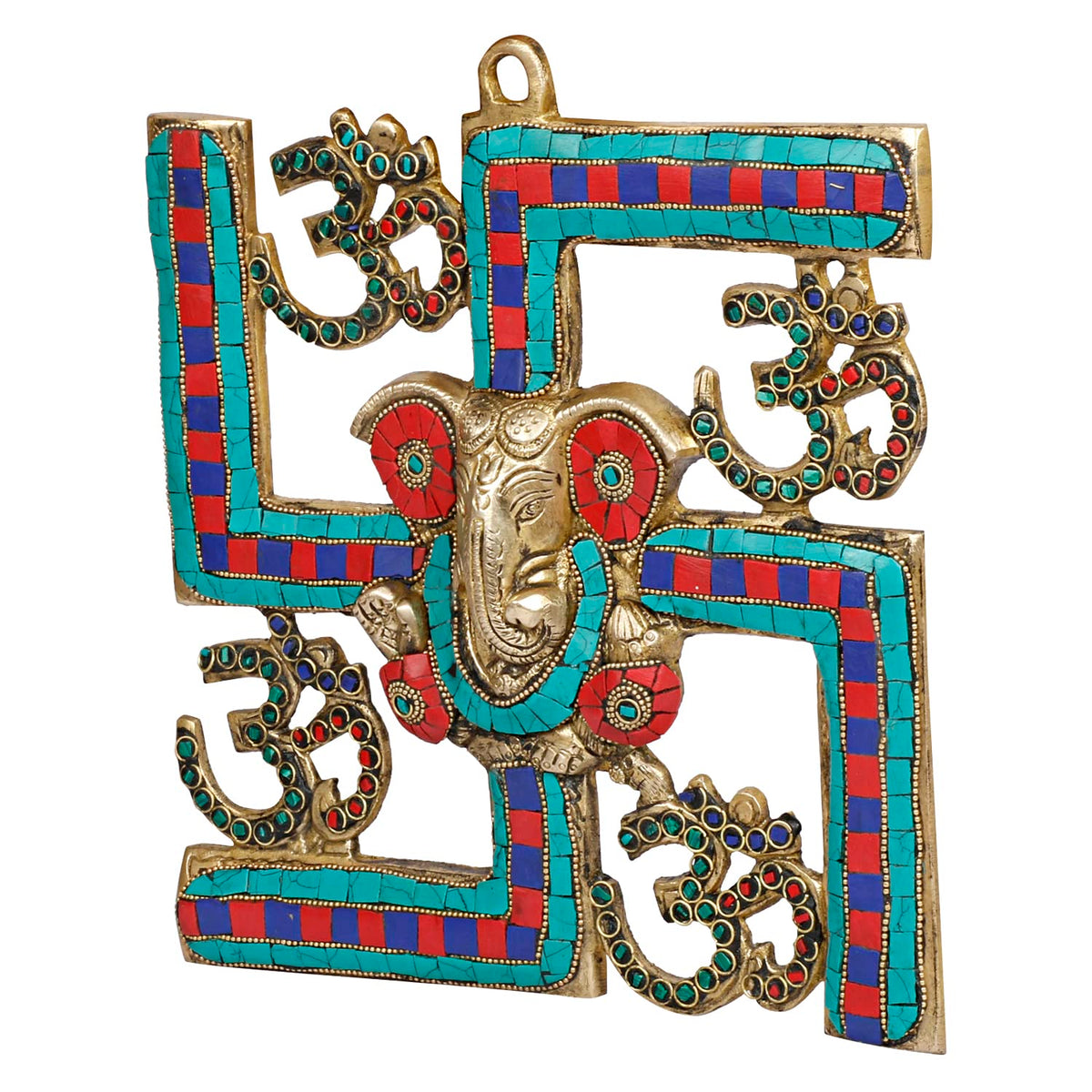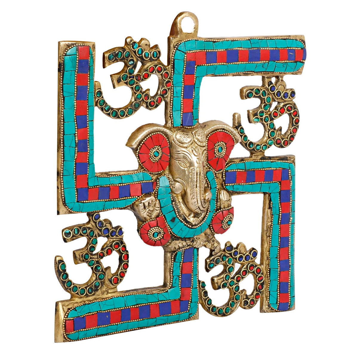 Svarup Brass Om Ganesha Swastika Wall Hanging, Brass Ganesh For Decor Entrance 8 Inch