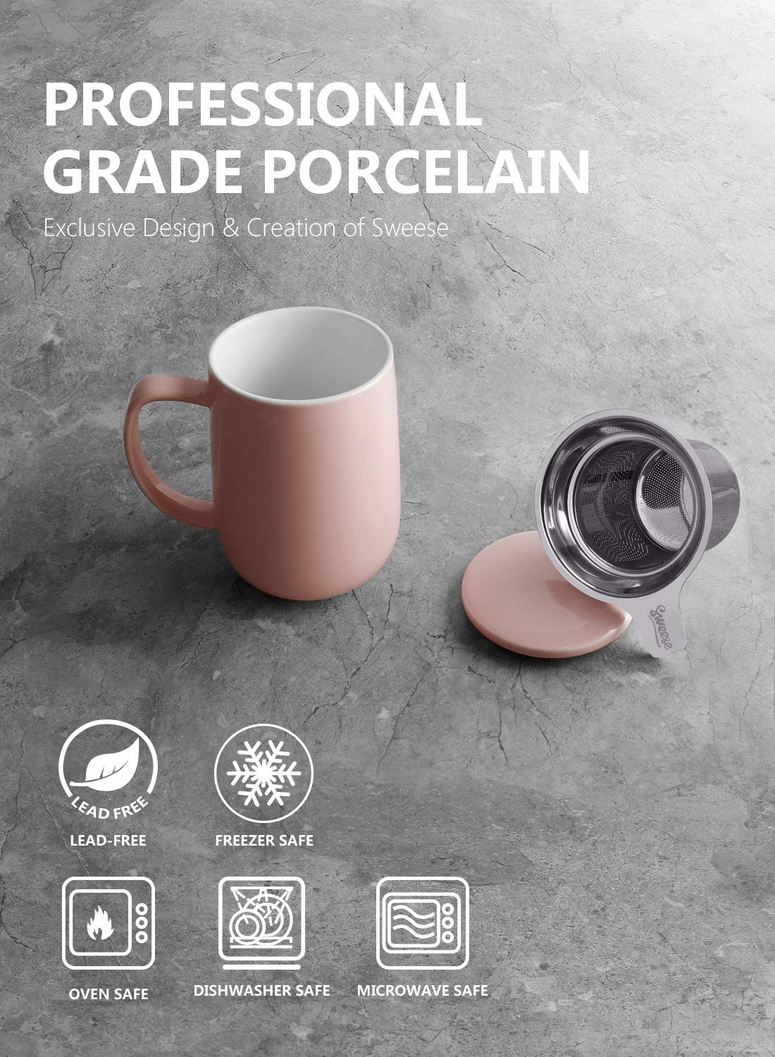 Sweese 20 Oz Porcelain Tea Mug With Infuser And Lid, Loose Leaf Tea Cup, Gifts For Tea Lover - Pink