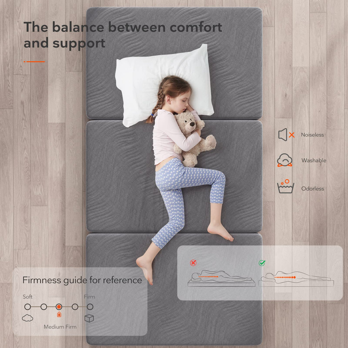 - Q: What are the dimensions of the Sweetnight Folding Mattress? A: The Sweetnight Folding Mattress is available in several sizes. The open dimensions for Twin XL are 39 inches by 80 inches by 4 inches, and when folded, it measures 39 inches by 26.67 inches by 12 inches.