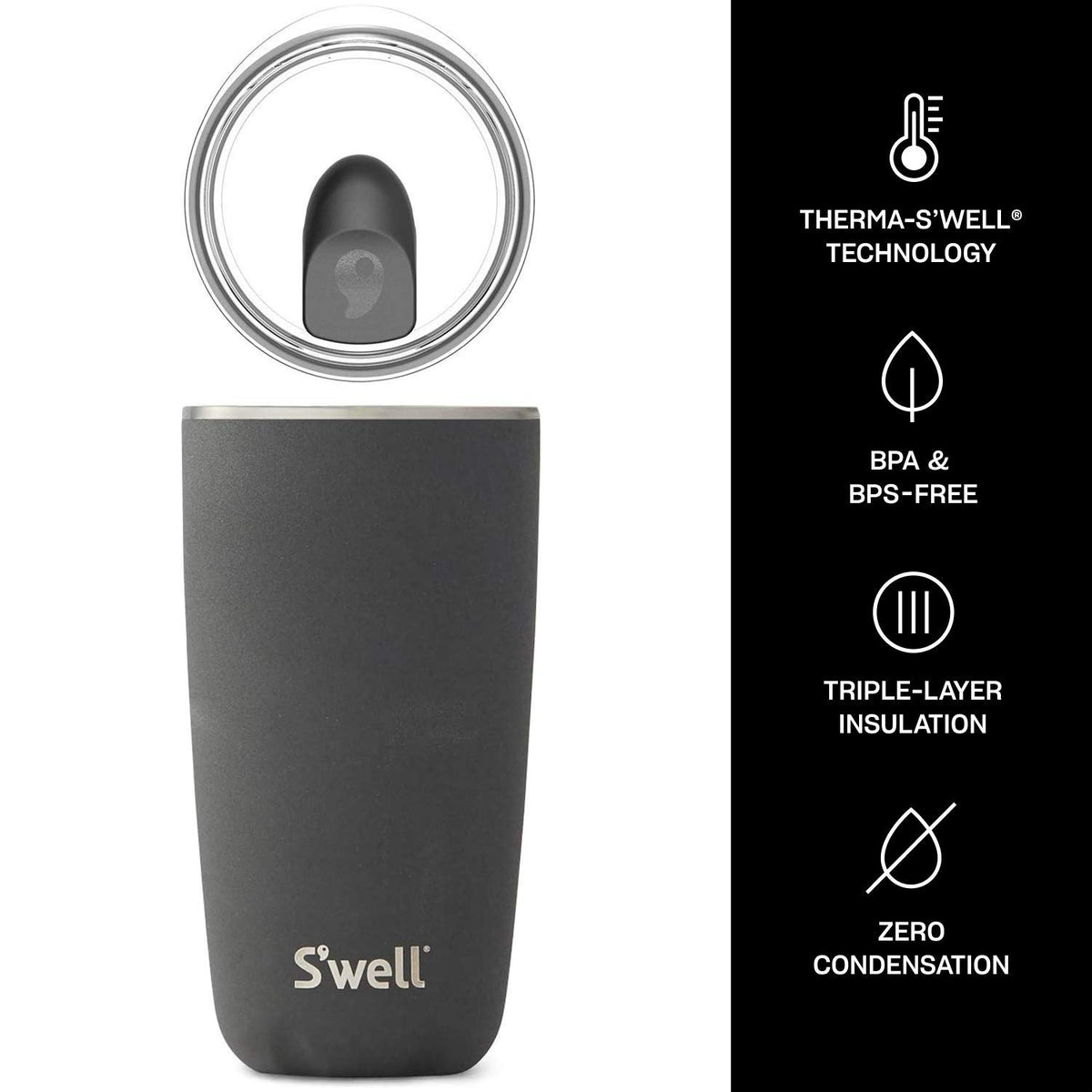 S'Well Stainless Steel Tumbler With Slide-Open Lid, 18Oz, Onyx, Triple Layered Vacuum Insulated Containers Keeps Drinks Cold For