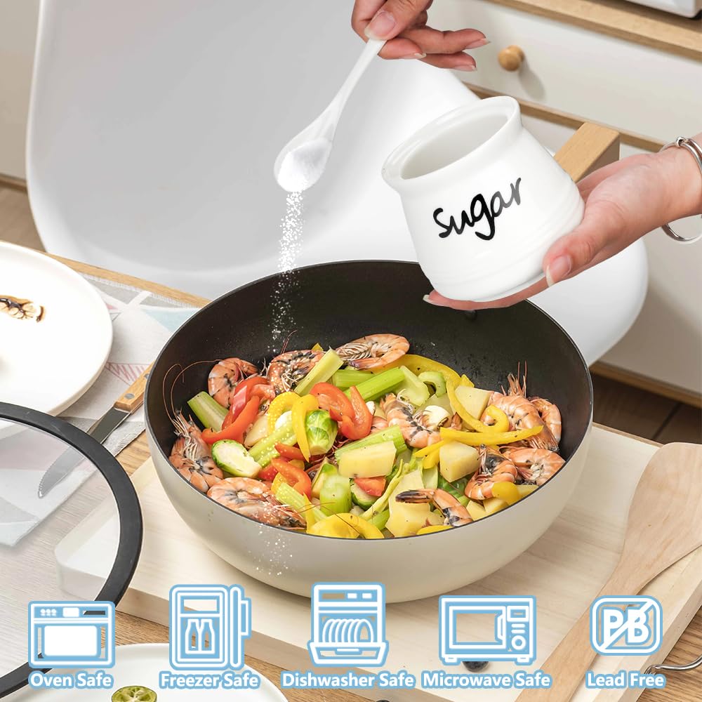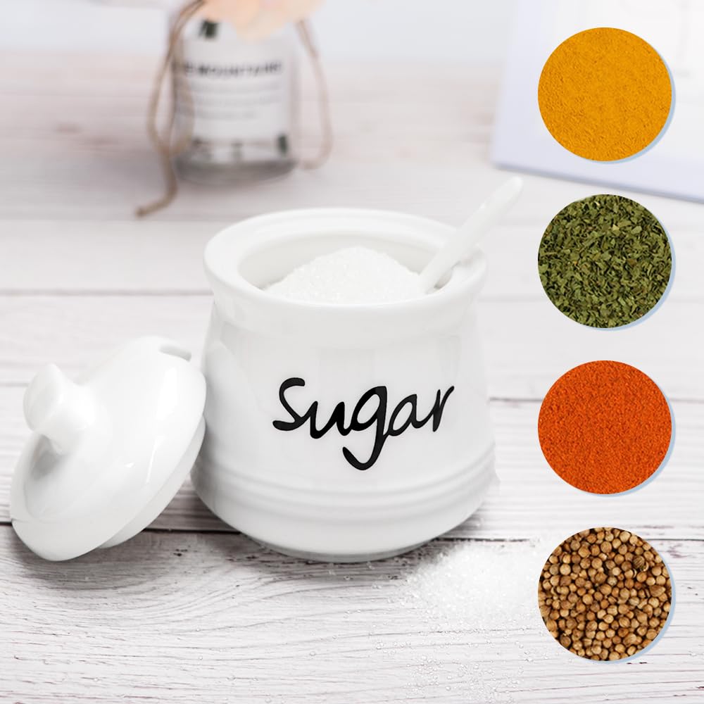 Swetwiny Ceramic Sugar Bowl With Lid And Spoon, 12 Ounces Porcelain Sugar Jar Sugar Dispenser, Sugar Container For Home And Kitc