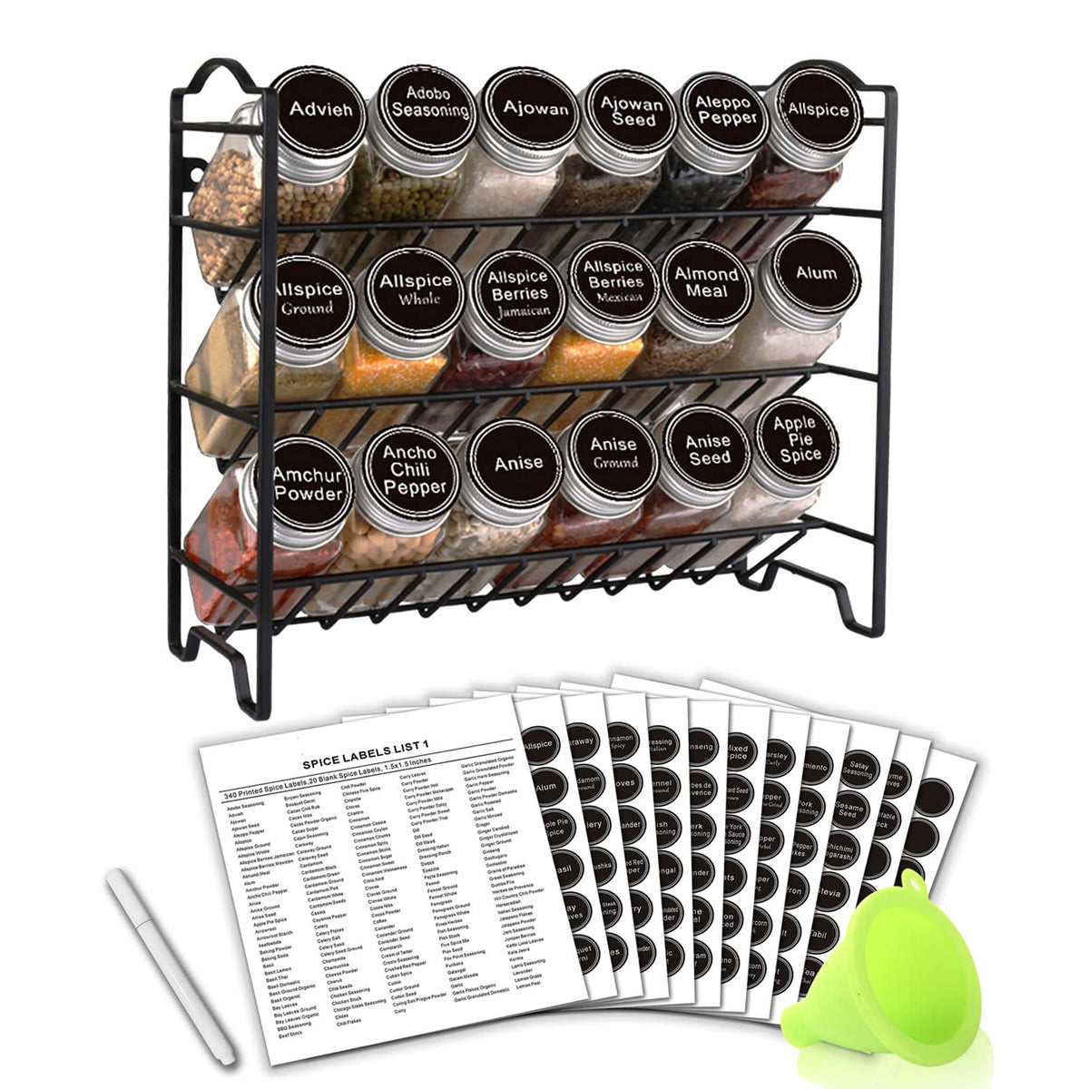 - Q: Does the spice rack come with labels for the jars? A: Yes, the spice rack includes 396 spice labels, with 340 preprinted labels and 56 blank labels for customization.